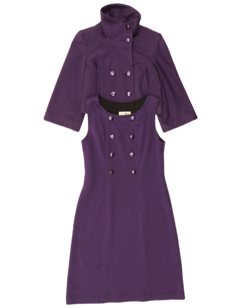 JOSEPH RIBKOFF Womens 3/4 Sleeve 2 Piece Set UK 14 Large Purple Pinstripe