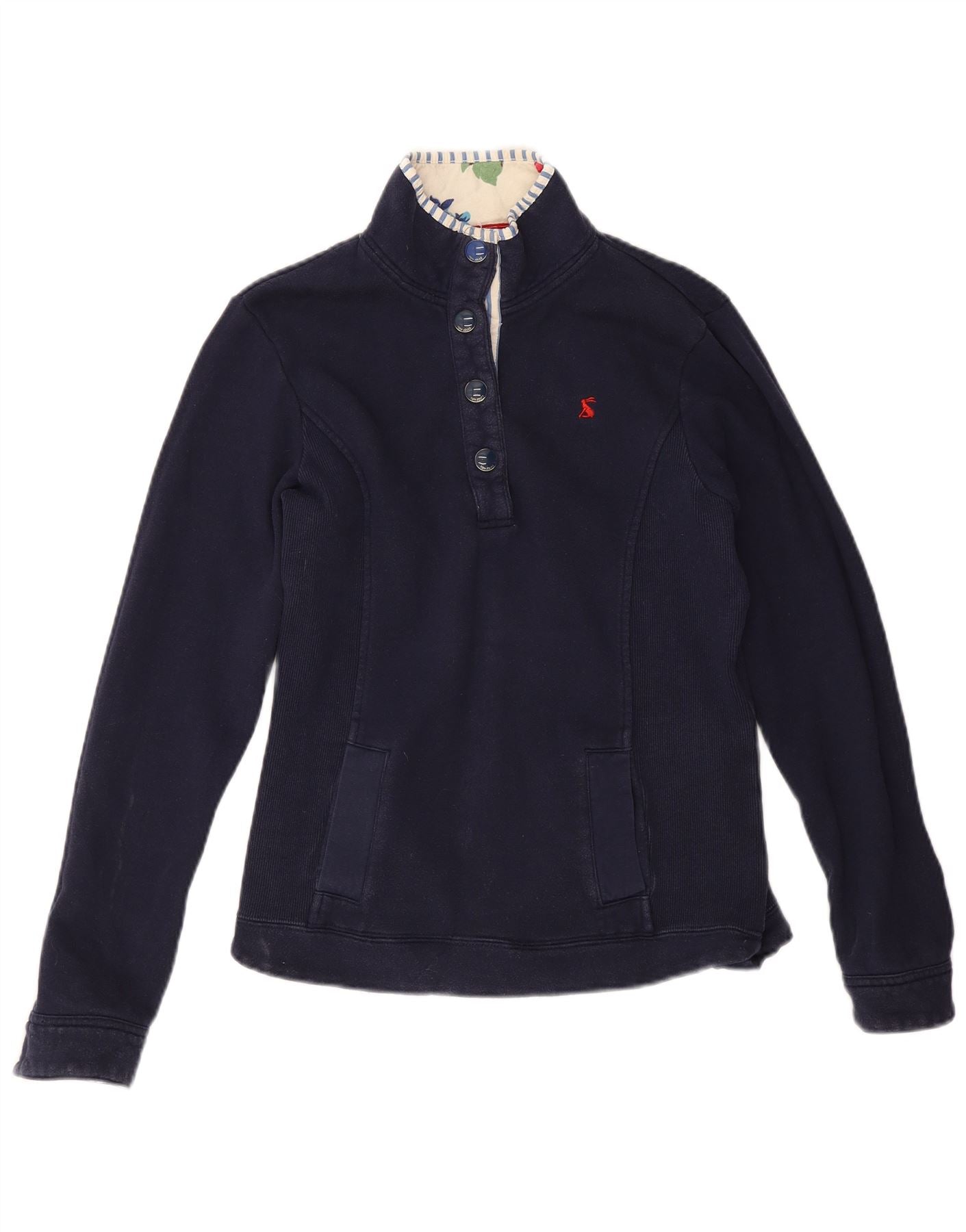 Joules Dame Button Neck Sweatshirt Jumper UK 8 Small Navy Blue Bomuld