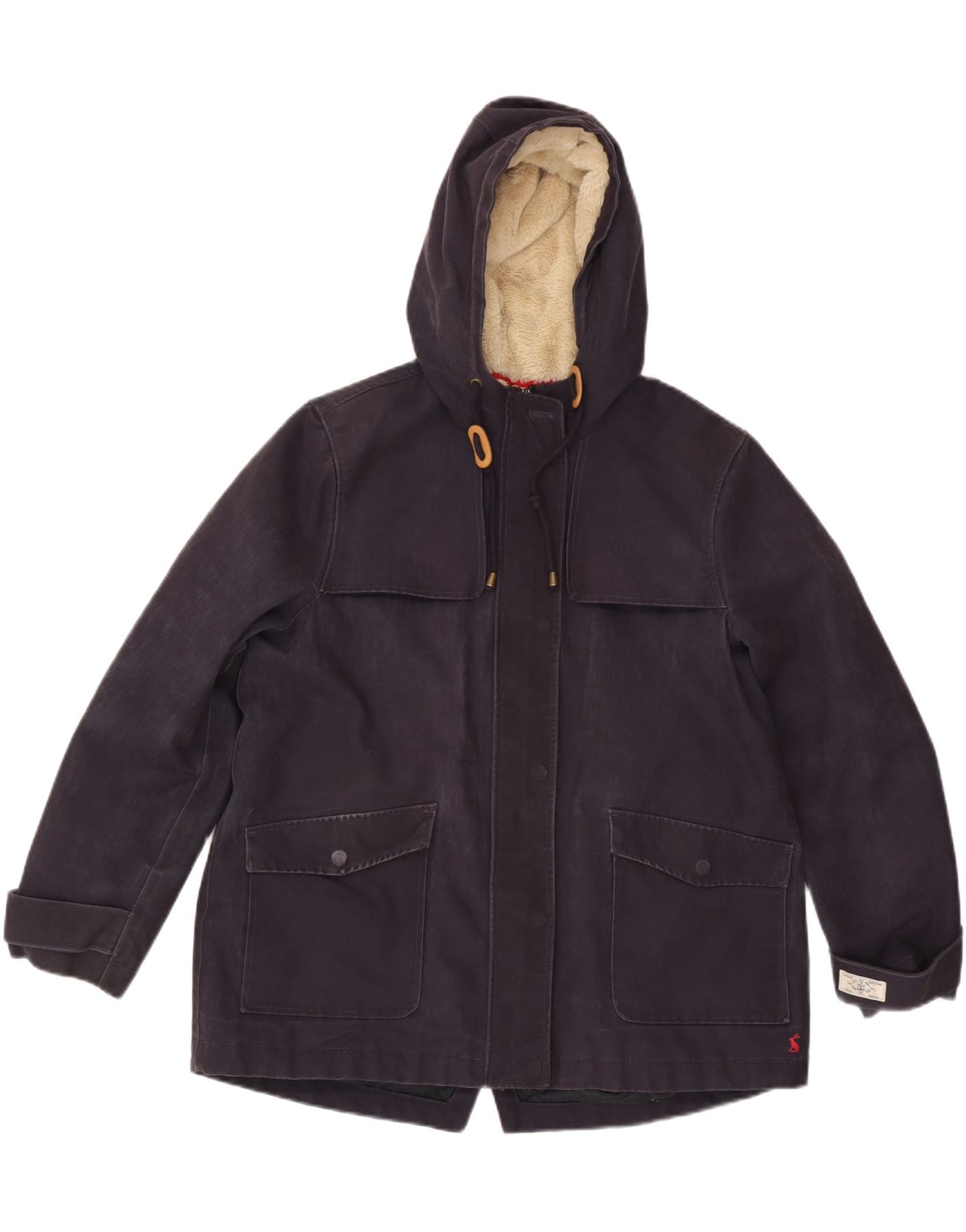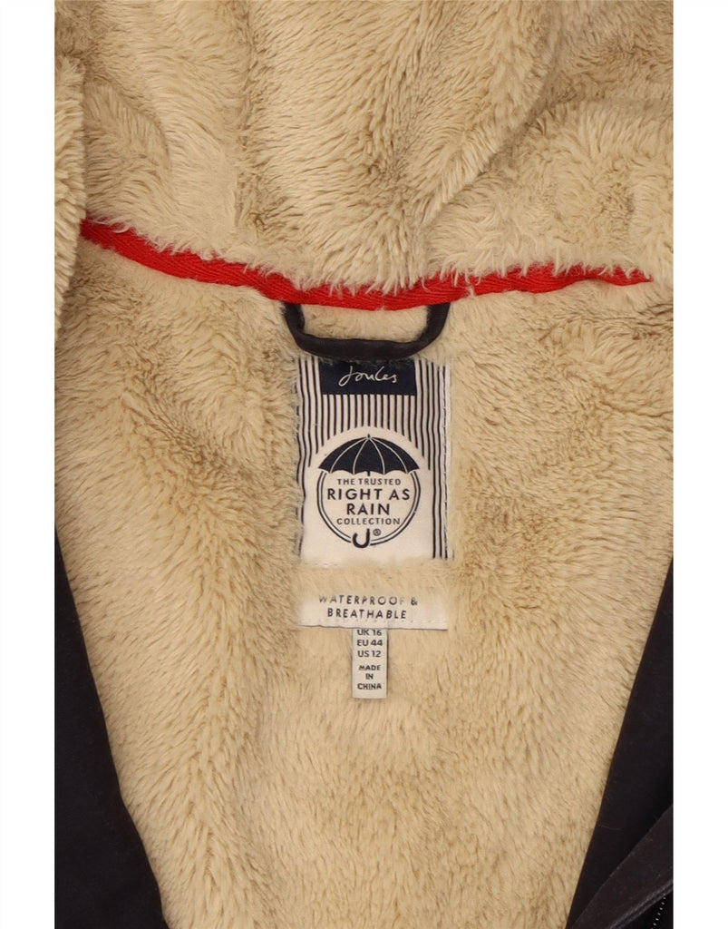 JOULES Womens Hooded Sherpa Parka Jacket UK 16 Large Navy Blue Cotton