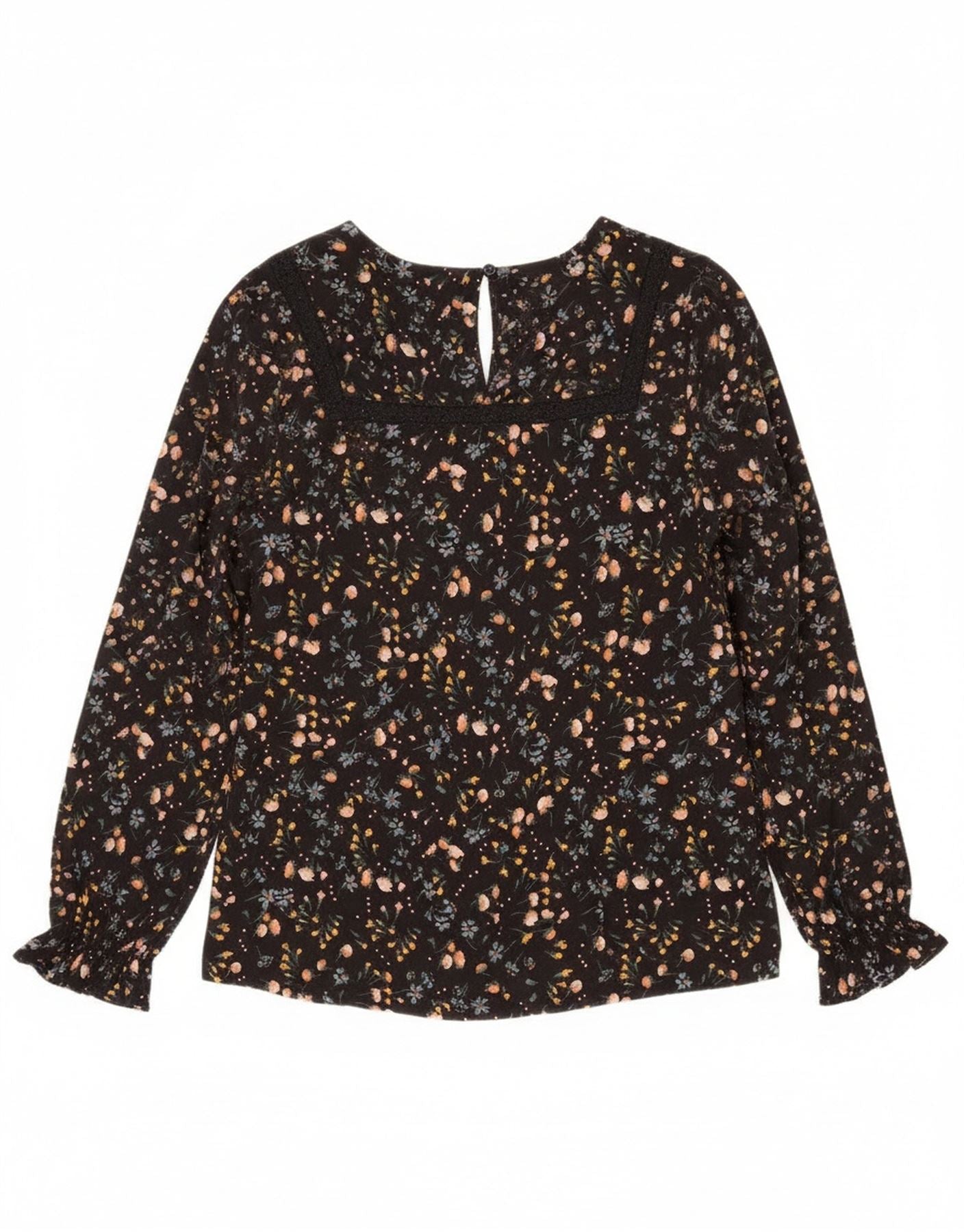 Joules Dame Langærmet Bluse Top UK 12 Medium Black Floral Bomuld