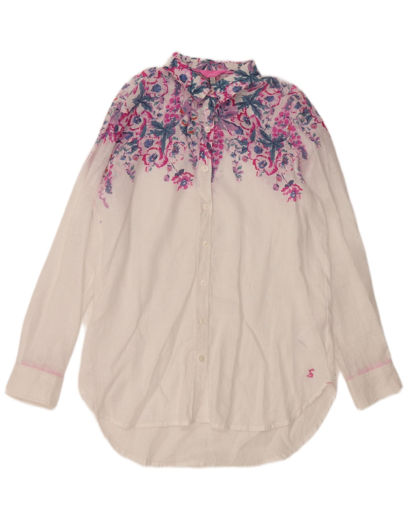Joules Dame Oversized Shirt UK 8 Small White Floral Linen