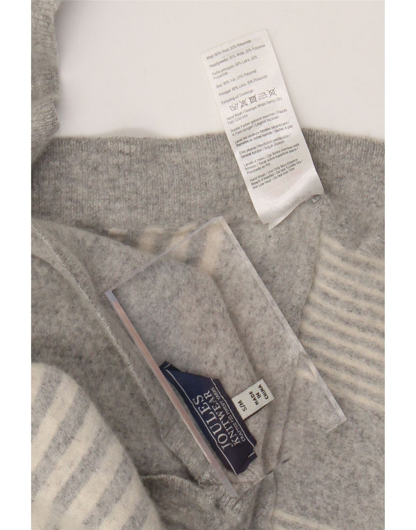JOULES Dame Poncho Cardigan Sweater UK 10 Lille grå stribet uld