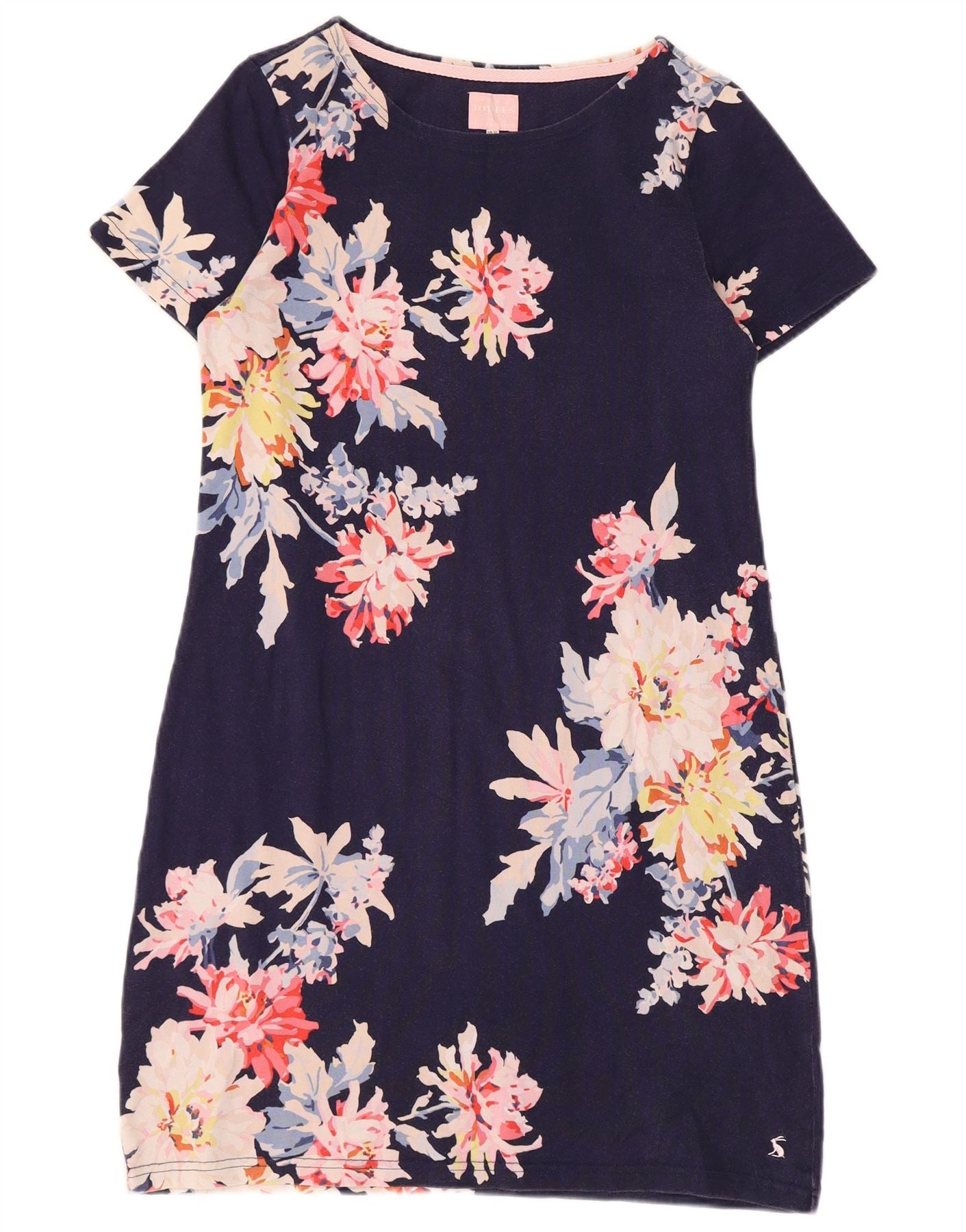 JOULES Dameskedekjole UK 12 Mellem marineblå blomsterbomuld