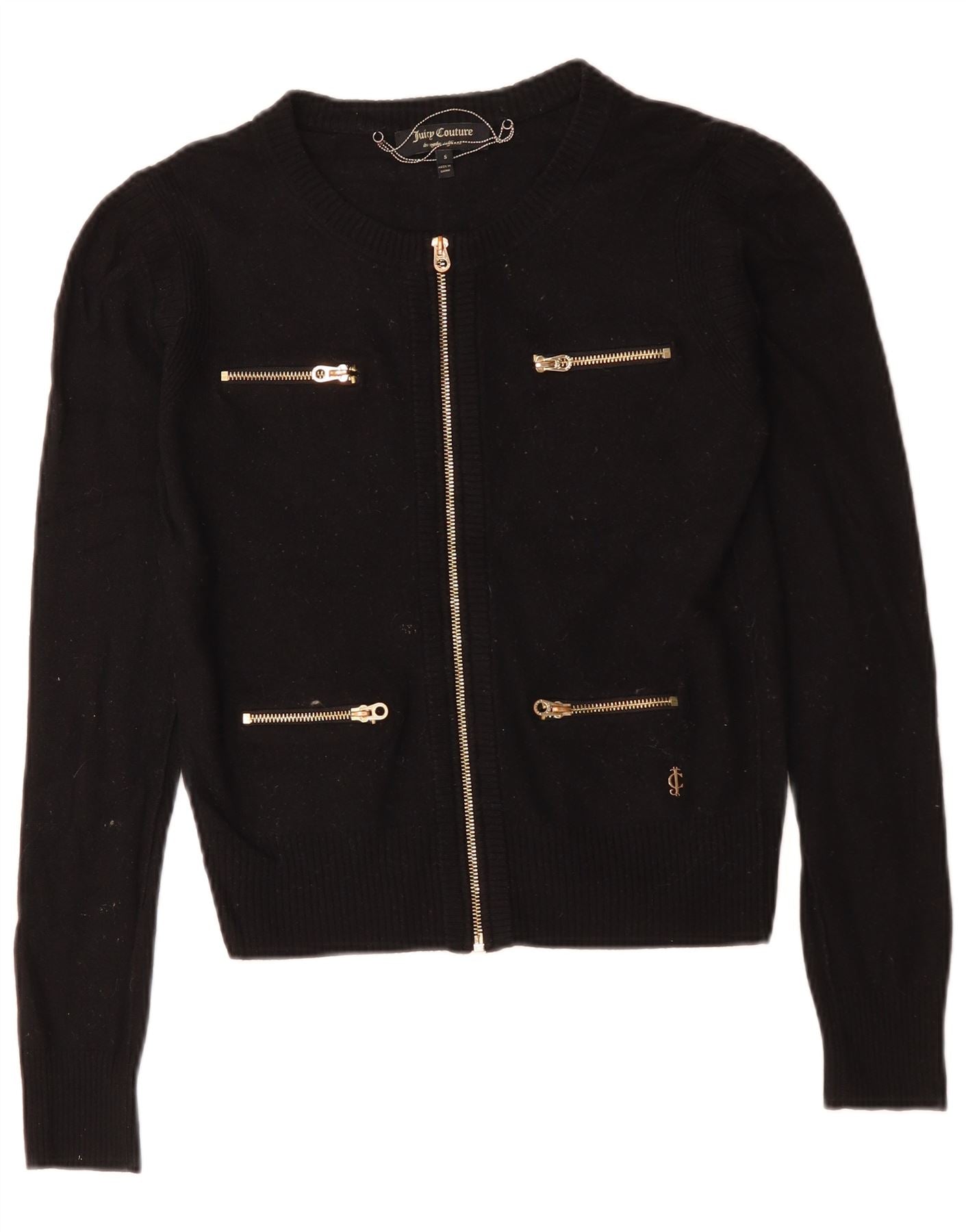Juicy Couture Dame Crop Cardigan Sweater UK 10 Small Black Wool