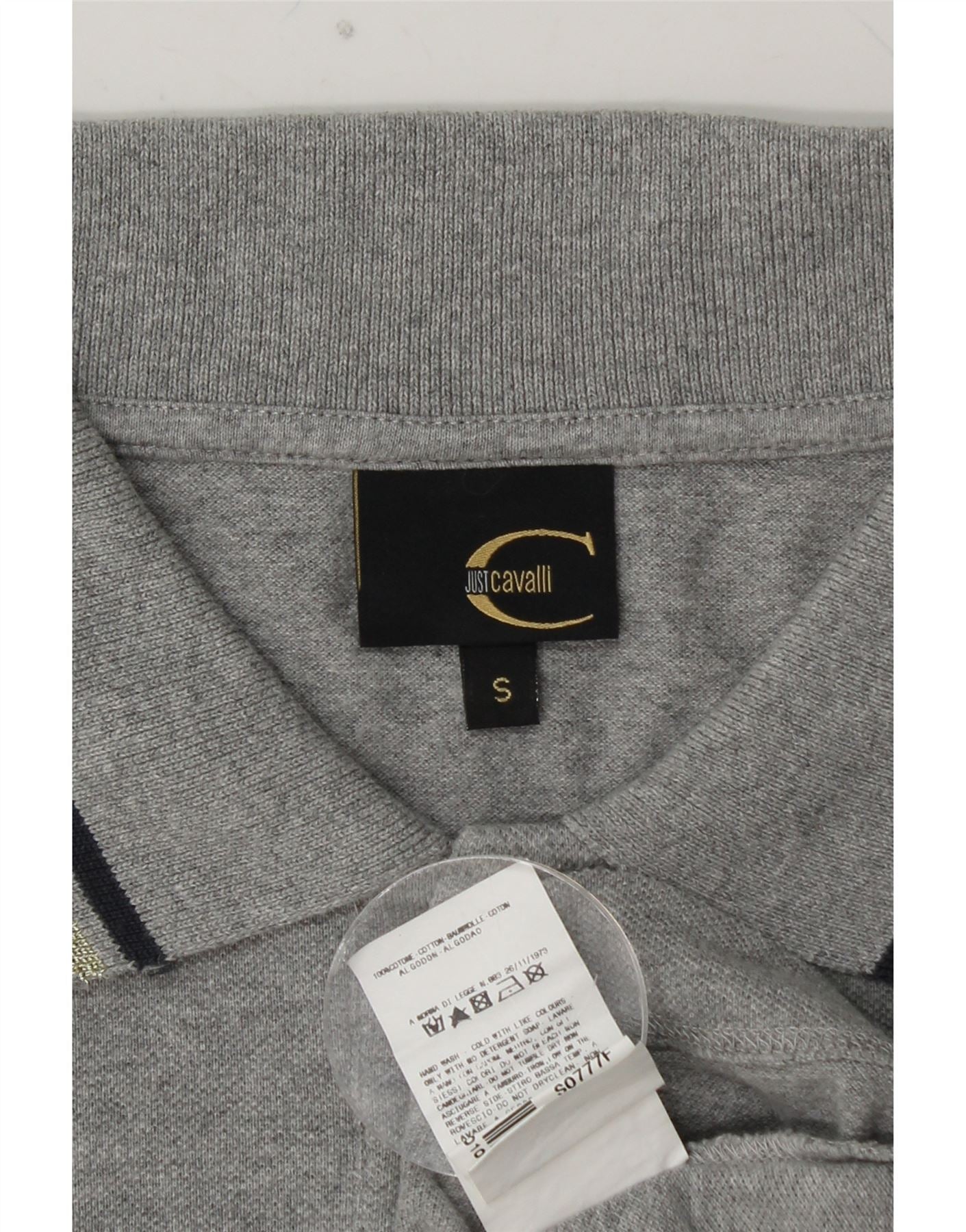 JUST CAVALLI grafisk langærmet poloshirt til kvinder UK 10 lille grå bomuld