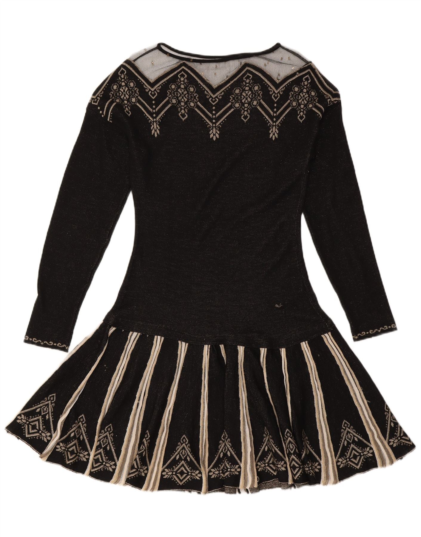 JUST CAVALLI Womens Long Sleeve Jumper Dress UK 10 Small Black Striped