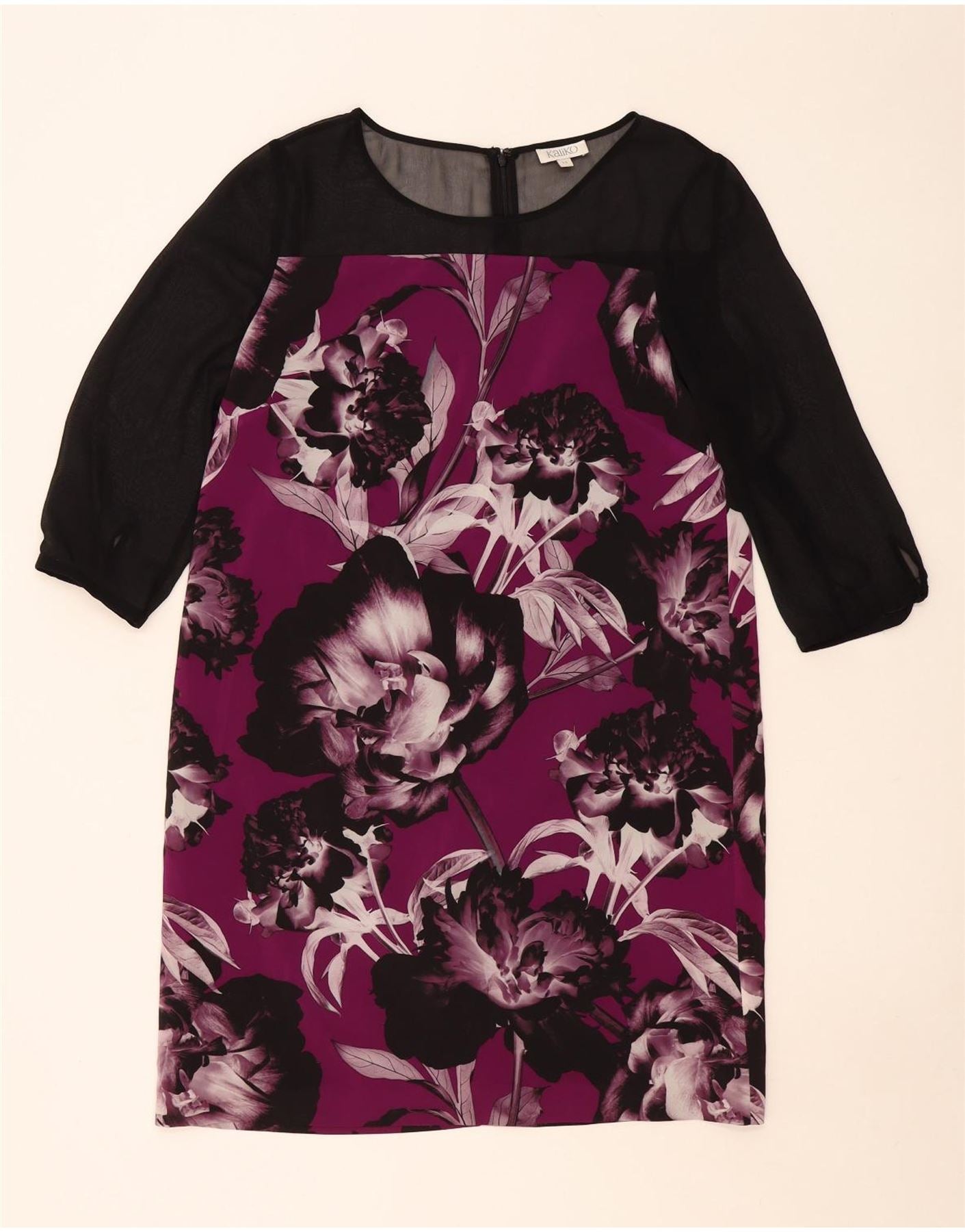 Kaliko Dame 3/4 ærmet Skift Kjole UK 14 Large Purple Floral Polyester