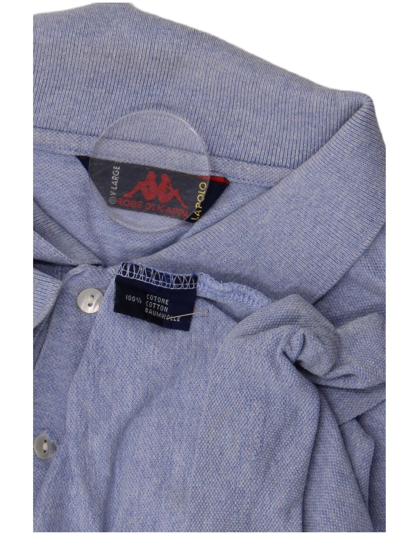 - AI beskrivelse: Denne Robe Di Kappa herre poloshirt er lavet af blødt blåt bomuldsstrik. Den har en klassisk halsudskæring med knaplukning for et raffineret look. Korte ærmer og en normal pasform sikrer komfort og let bevægelse. Et subtilt broderet logo tilføjer et signaturpræg til denne alsidige top.