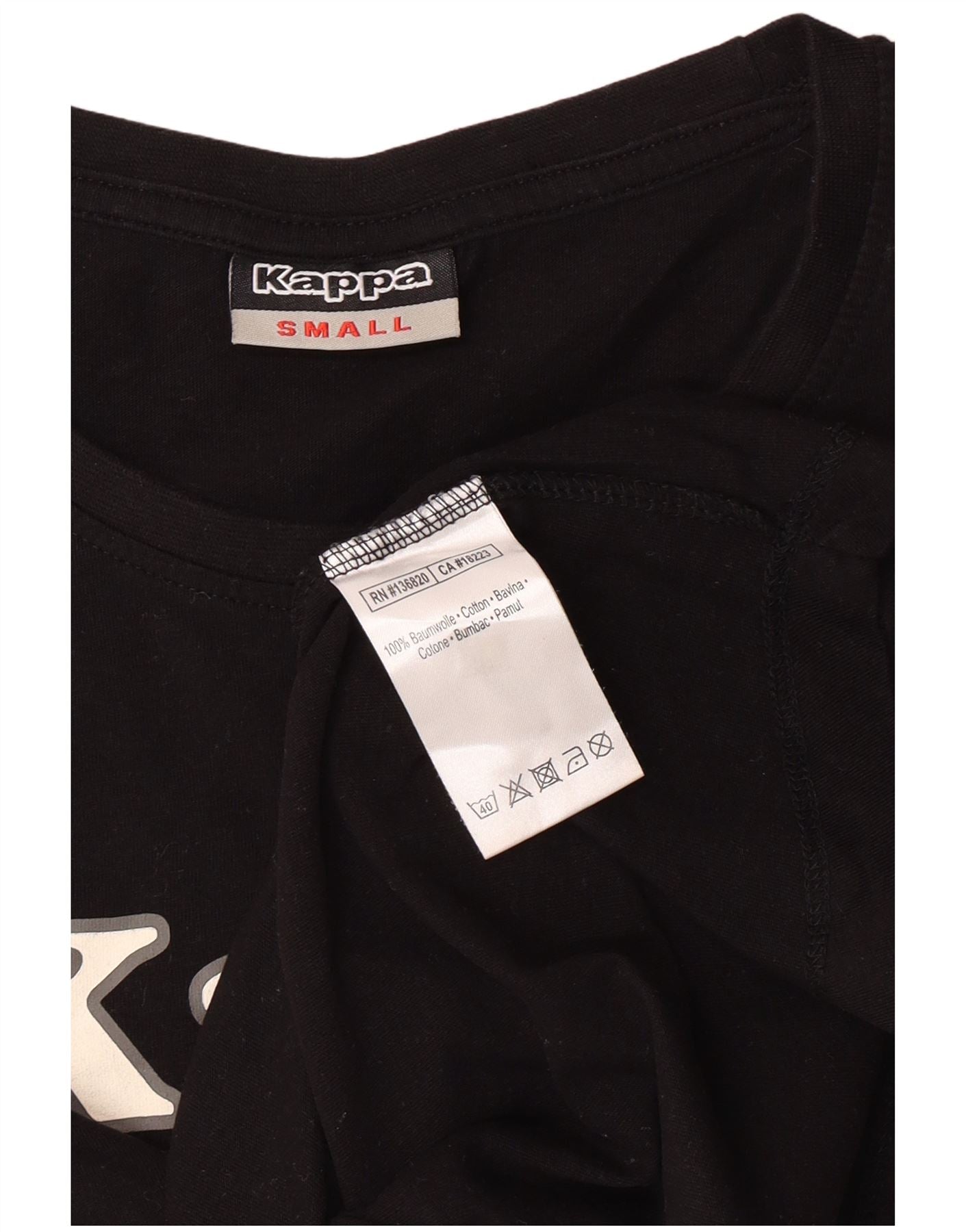 KAPPA Grafisk T-shirt top til kvinder UK 10 Lille sort bomuld