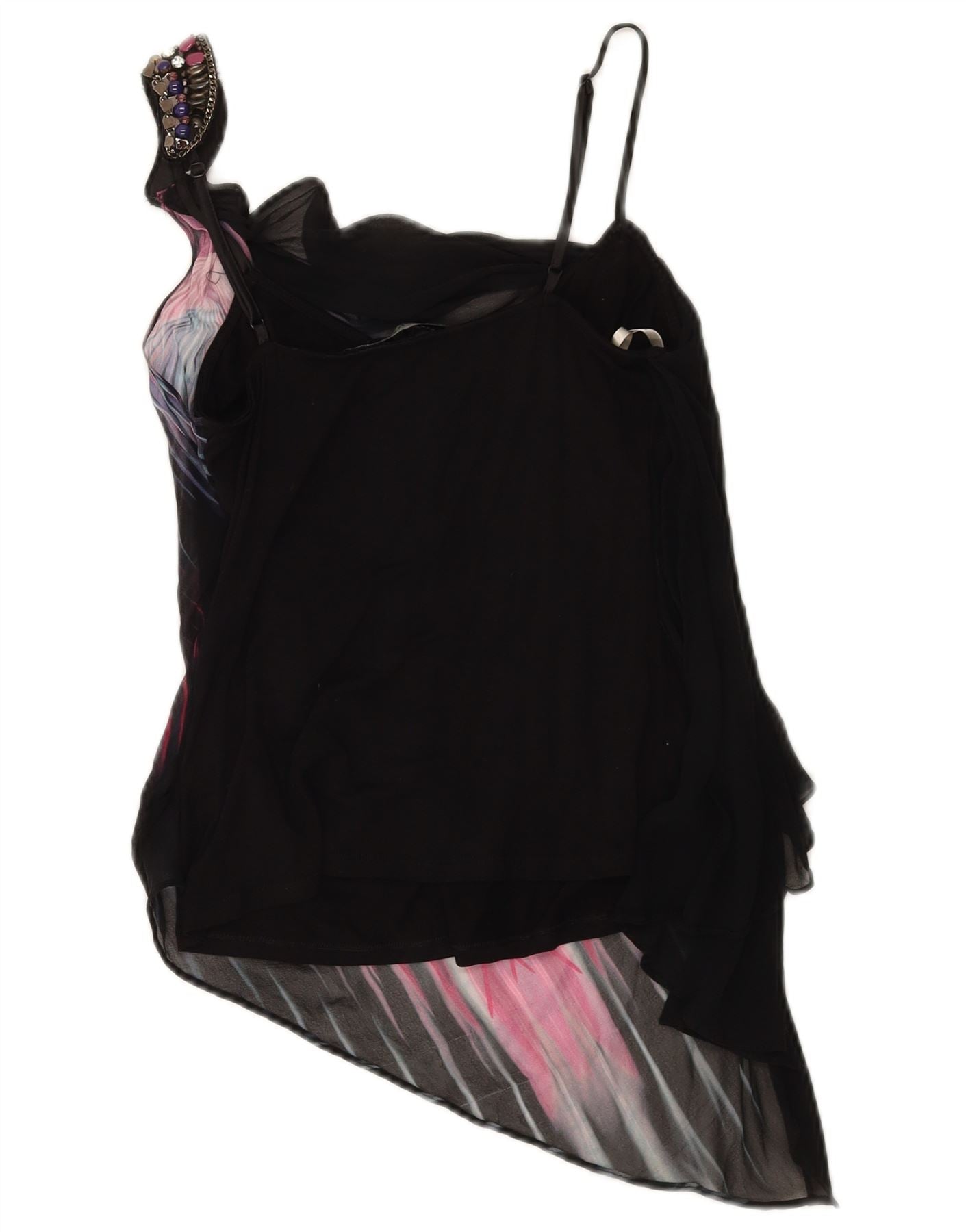 Karen Millen Dame Asymmetrisk Cami Top UK 10 Small Sort Stribet Viscose
