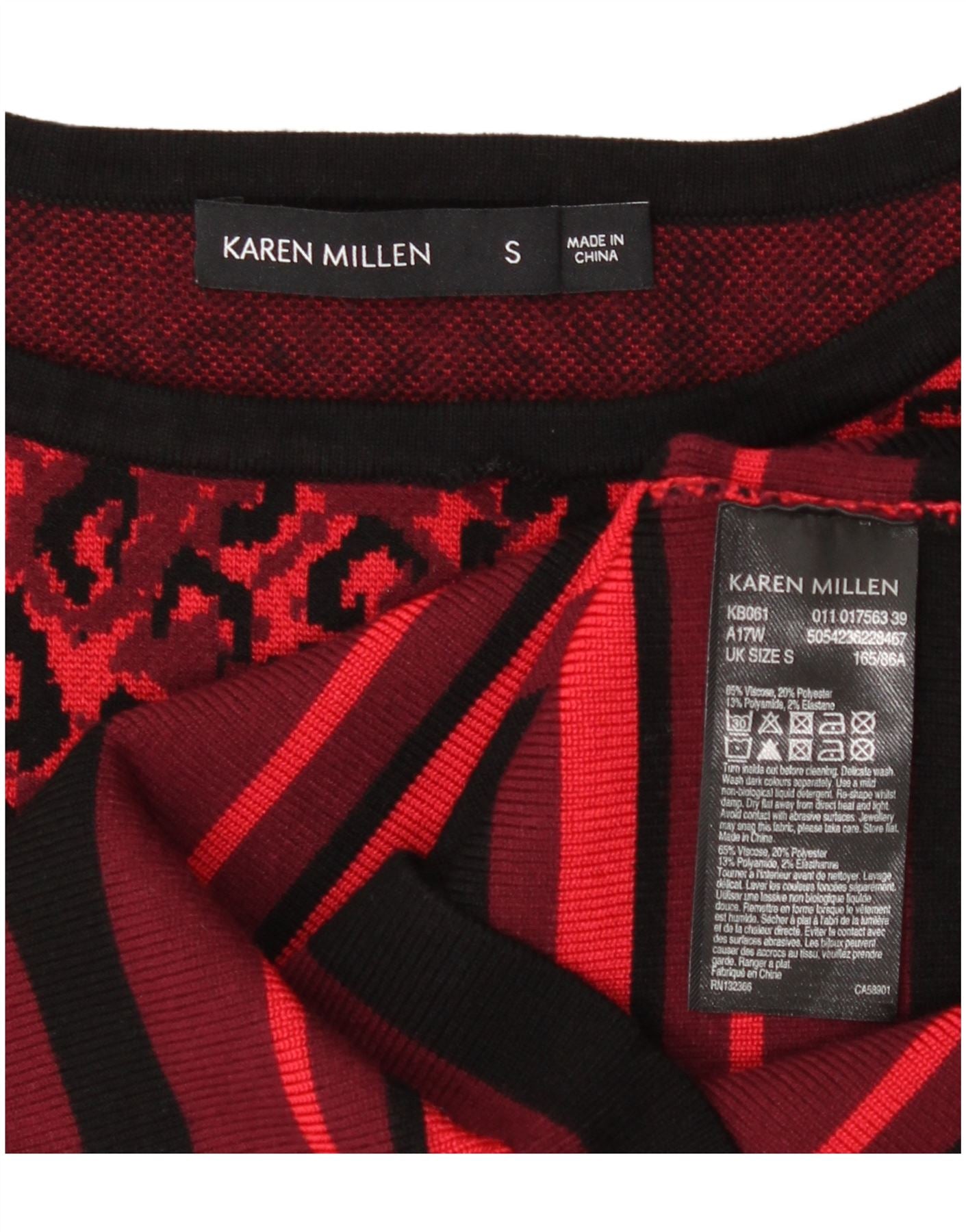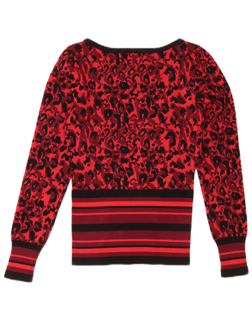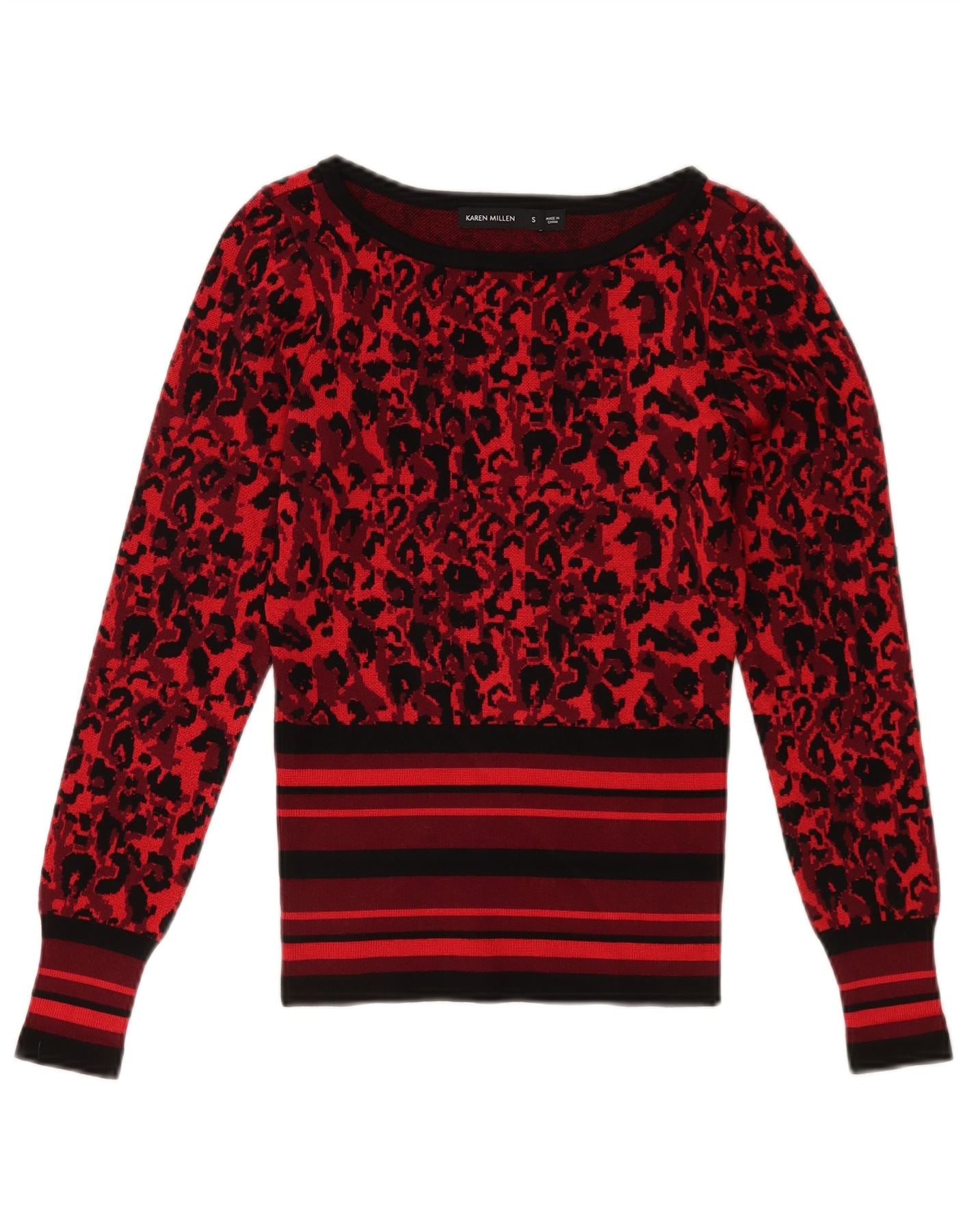 KAREN MILLEN Womens Boat Neck Jumper Sweater UK 8 Small Red Animal Print