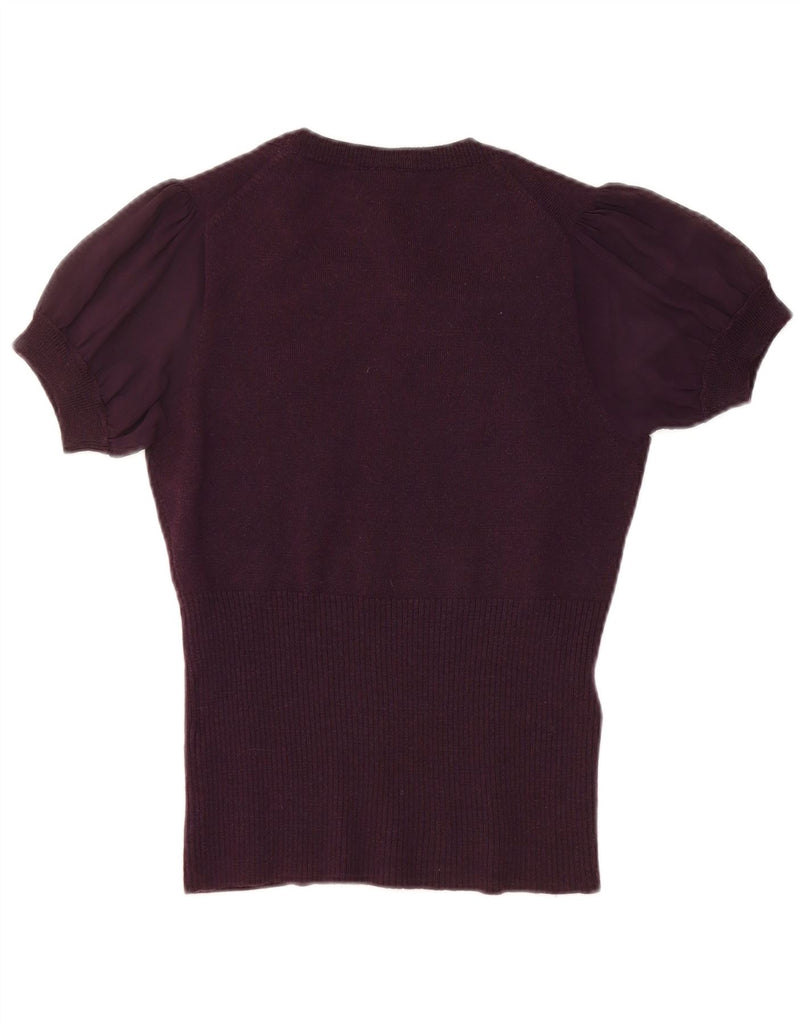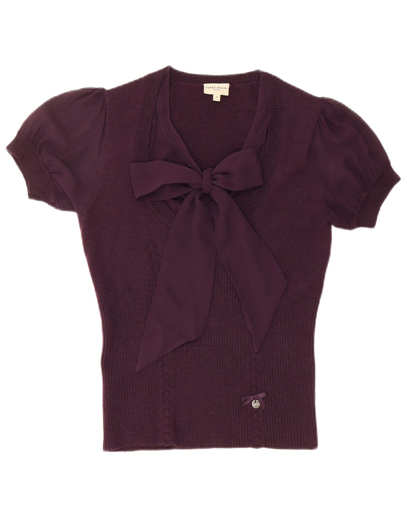 KAREN MILLEN Womens Knit Short Sleeve Blouse Top UK 8 Small Purple