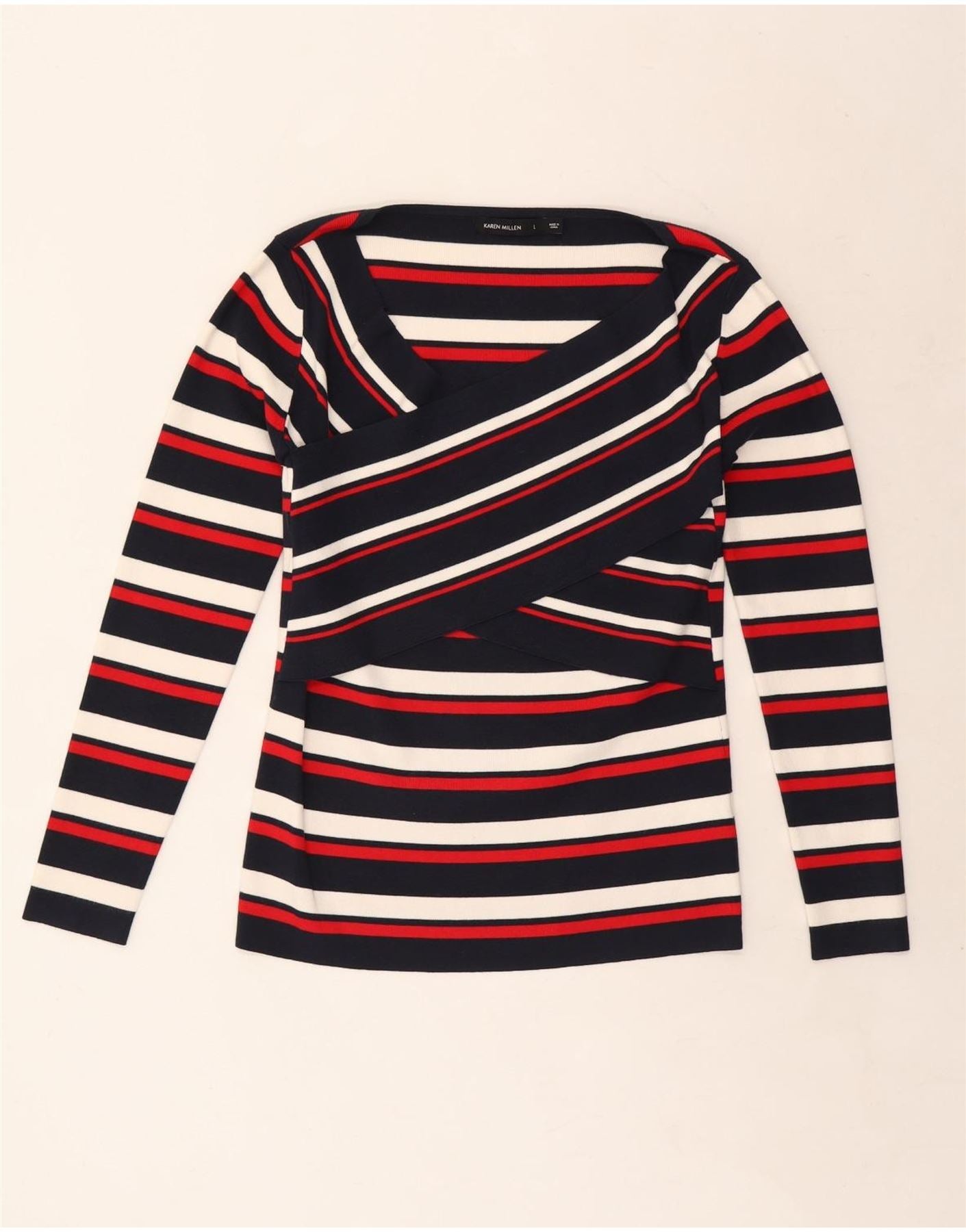 KAREN MILLEN Dame Top Langærmet UK 14 Stor Flerfarvet Stribet