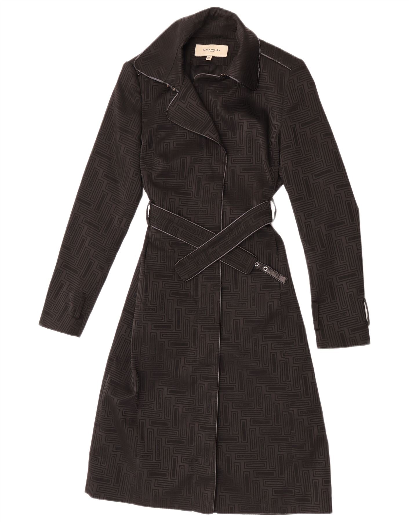 Karen Millen Womens Trench Coat UK 10 Lille sort geometrisk polyester