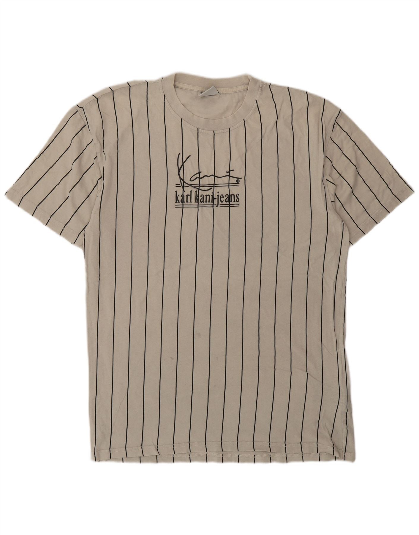 KARL KANI Herre grafisk T-shirt Top Lille beige stribet bomuld