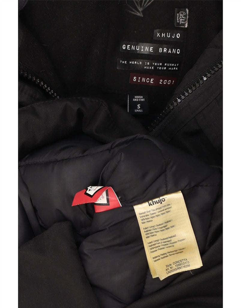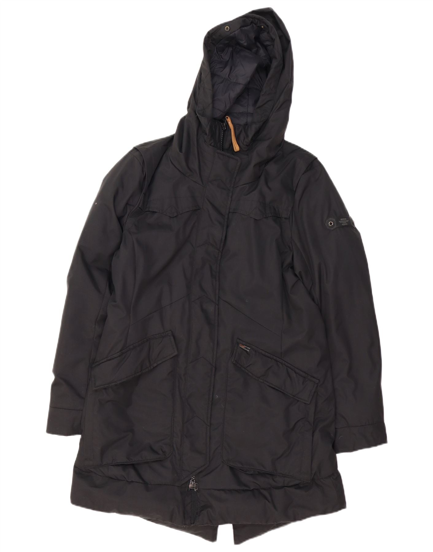 KHUJO Womens Oversized Hooded Parka Jacket UK 10 Small Black Nylon