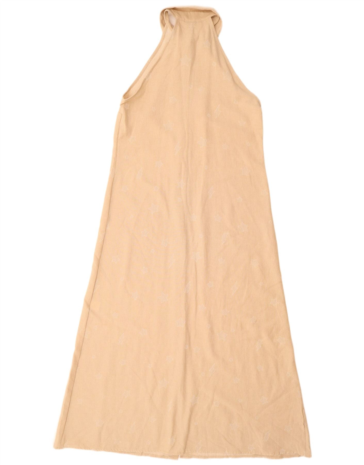 KIKISIX kvinders abstrakt mønster ærmeløs Maxikjole UK 14 Medium Beige