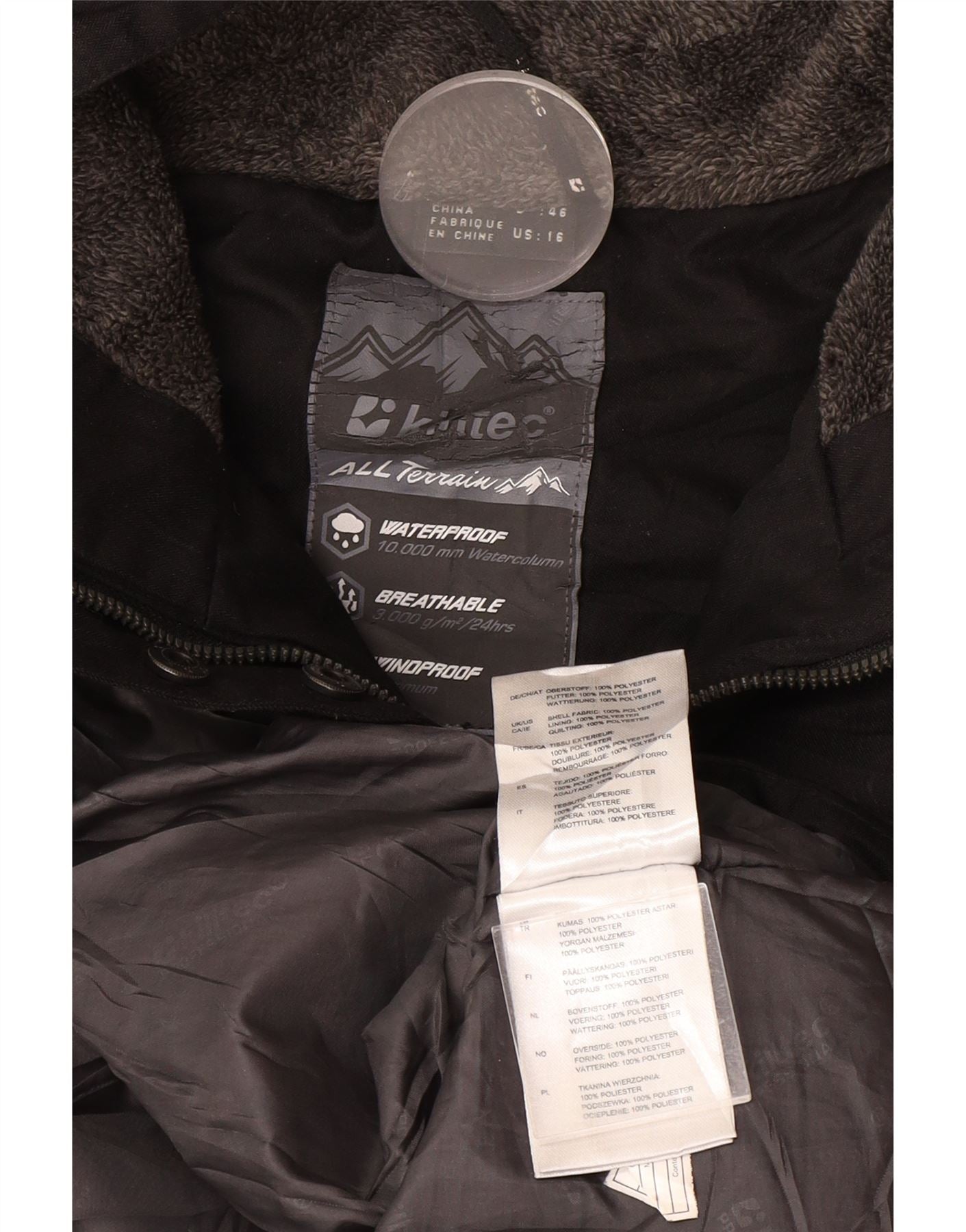 Killtec Dame Hooded Windbreaker Coat UK 16 Large Black Polyester