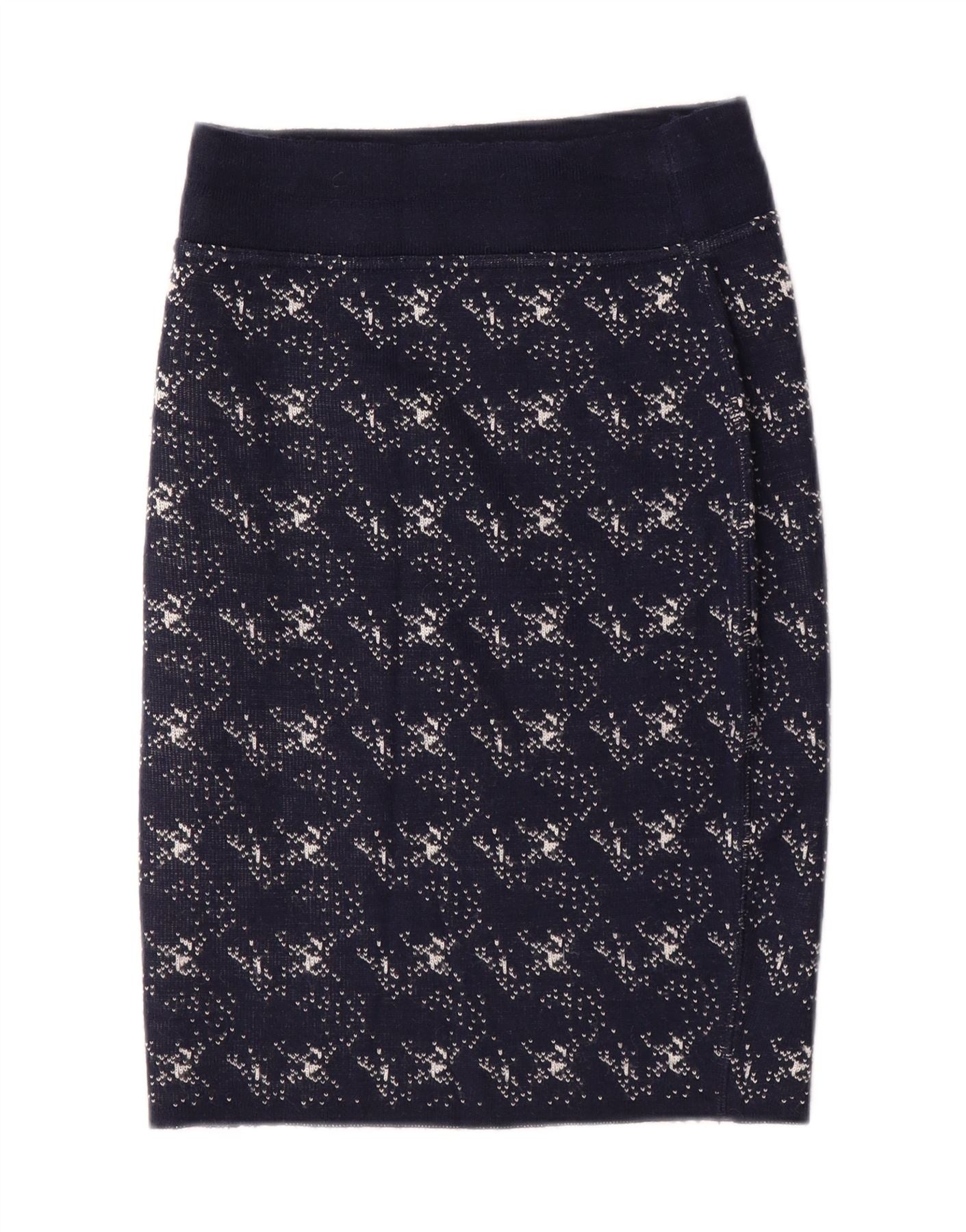 KOOKAI Womens Abstract Pattern Straight Skirt W24 XS Navy Blue Wool