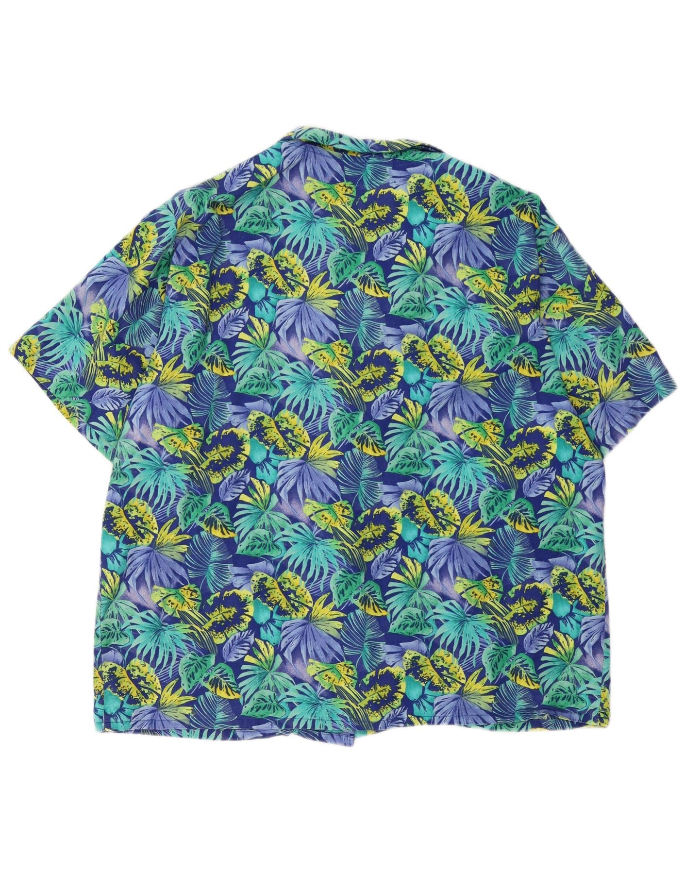 Krazy Kortærmet Herreskjorte Stor Blå Blomsterbomuld Hawaiiansk
