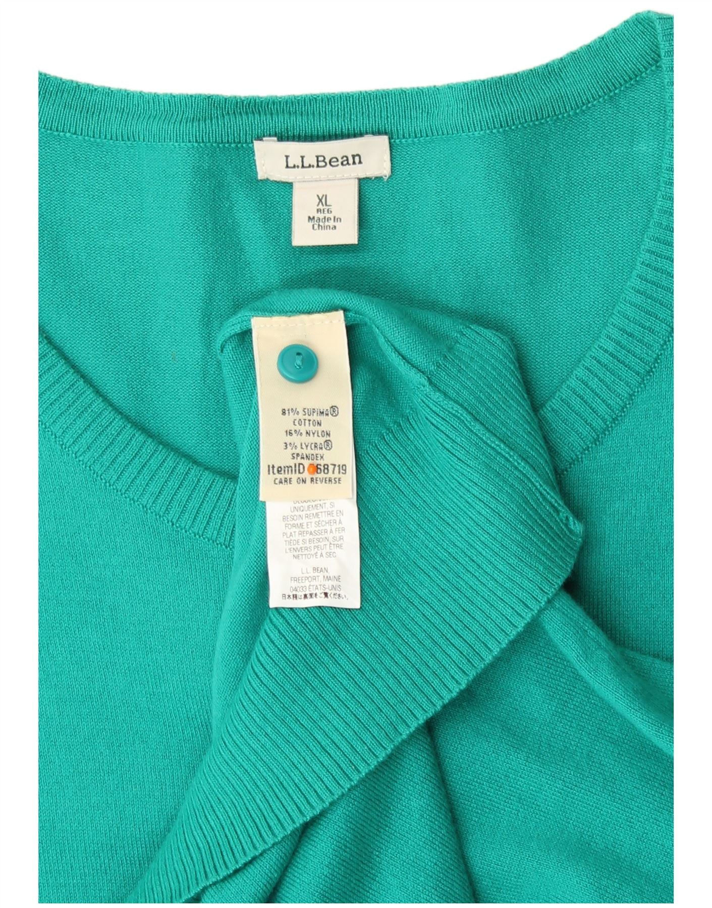 L.L.BEAN Dame cardigan sweater UK 18 XL turkis bomuld