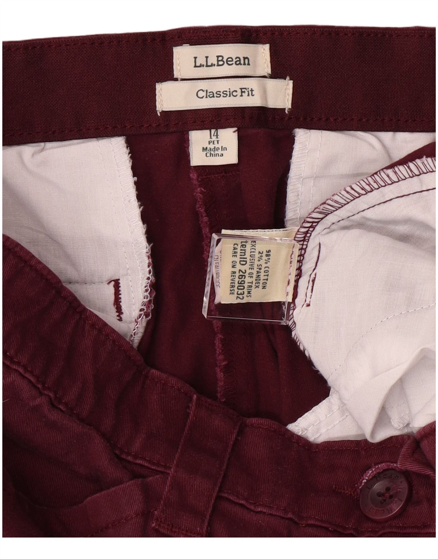 L.L.BEAN Womens Classic Fit Casual Trousers US 14 XL W32 L27 Burgundy