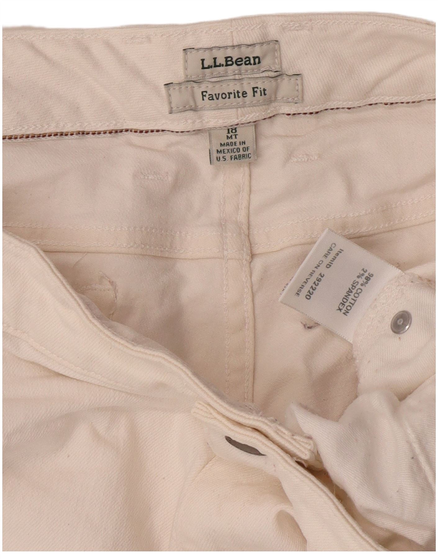 L.L.BEAN Womens Favorite Fit Slim Jeans US 18 XL W38 L32 White Cotton