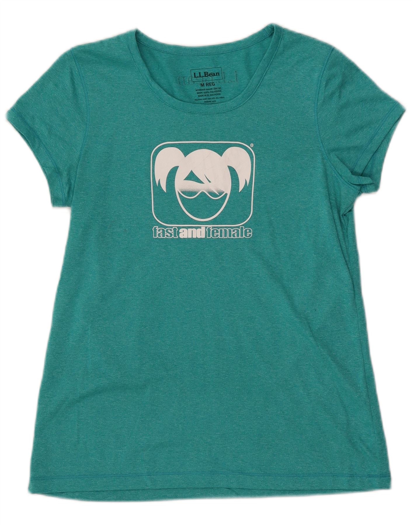 L.L.BEAN Grafisk T-shirt top til kvinder UK 12 Medium Turkis Flecked