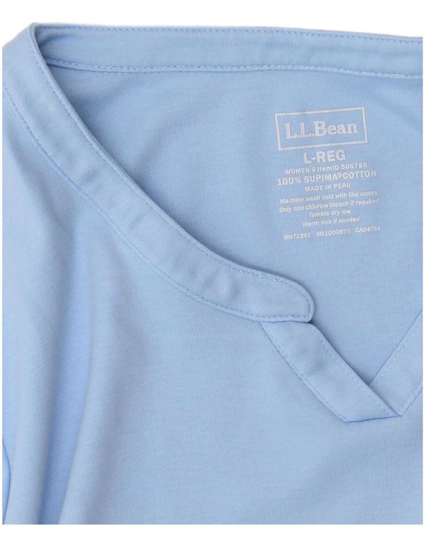 L.L.Bean Dame T-Shirt Top UK 16 Stor Blå Bomuld