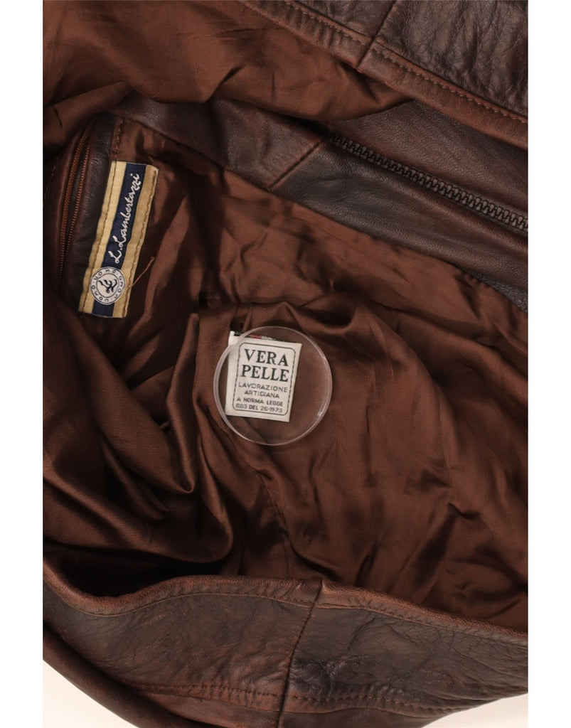 L.LAMBERTAZZI Mens Leather Jacket IT 50 Large Brown Leather