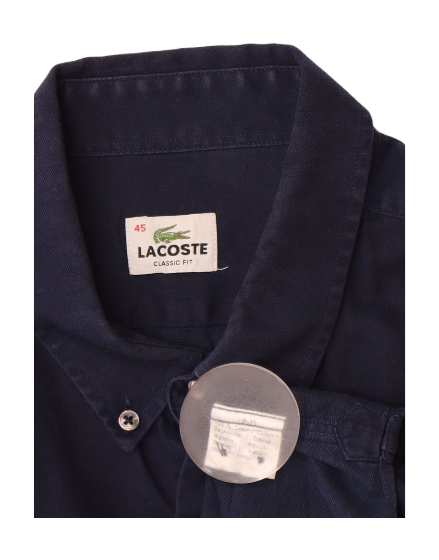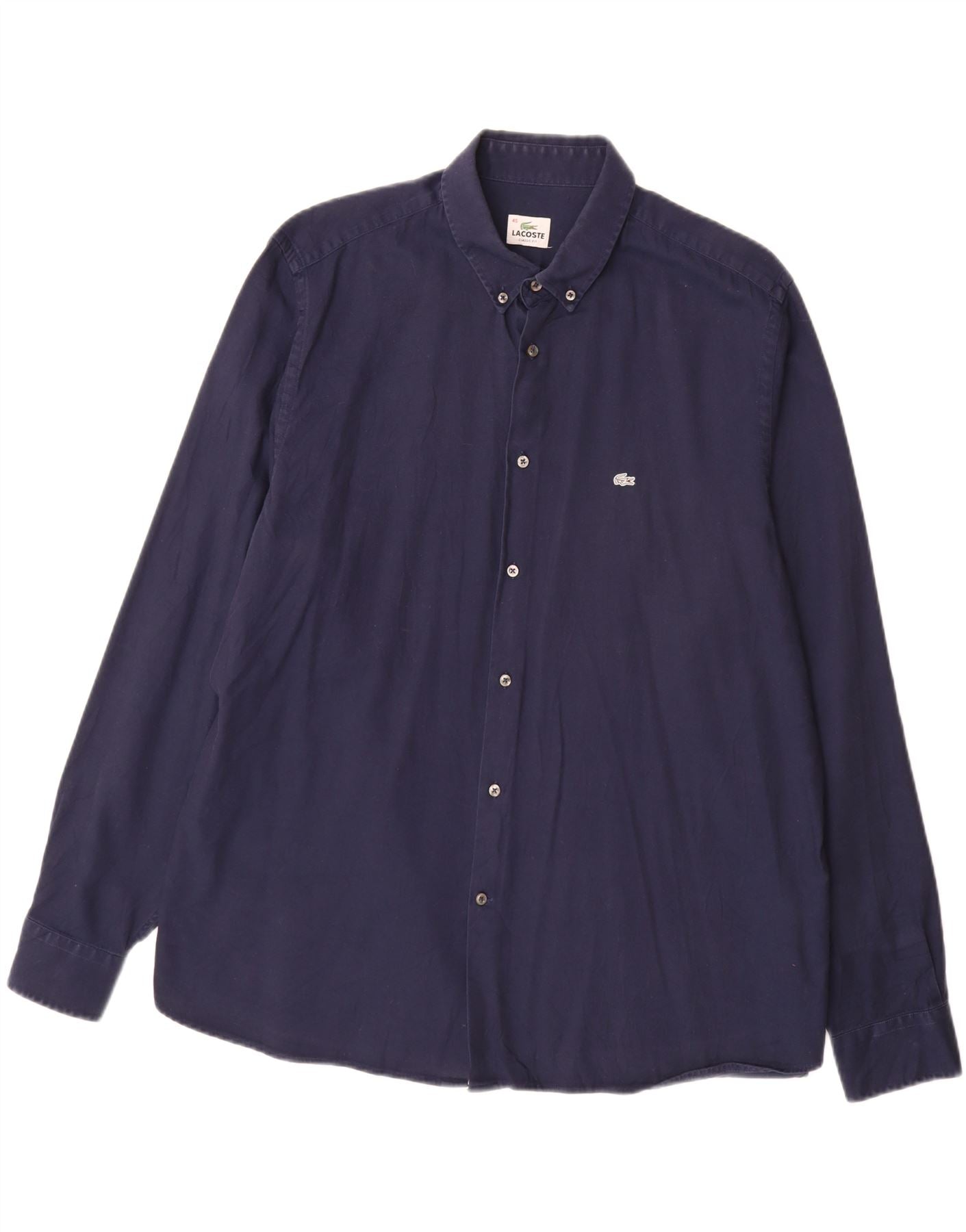 LACOSTE Herre Classic Fit skjorte Størrelse 45 XL Navy Blue Bomuld