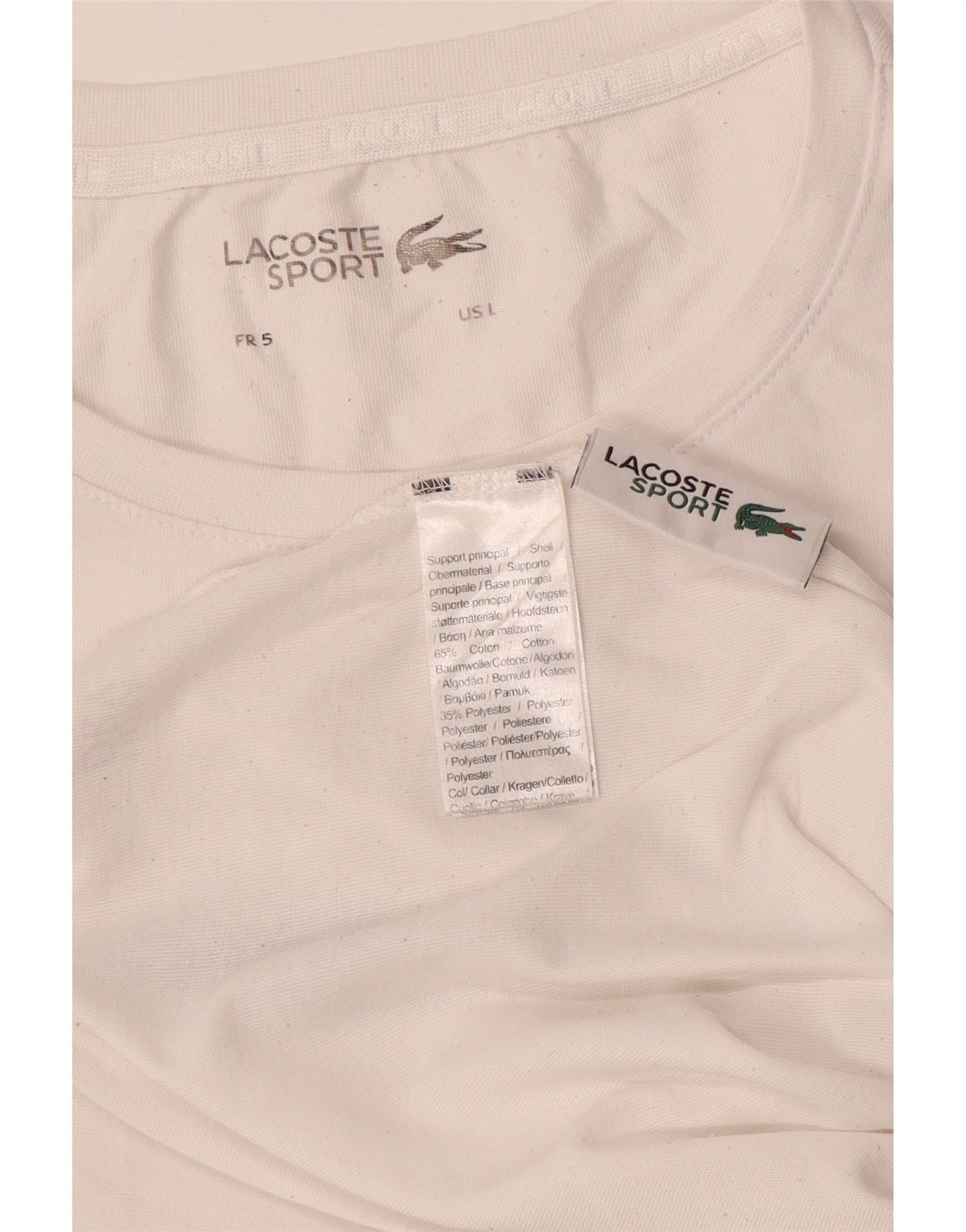 LACOSTE Herre grafisk T-shirt Top størrelse 5 Stor hvid bomuld