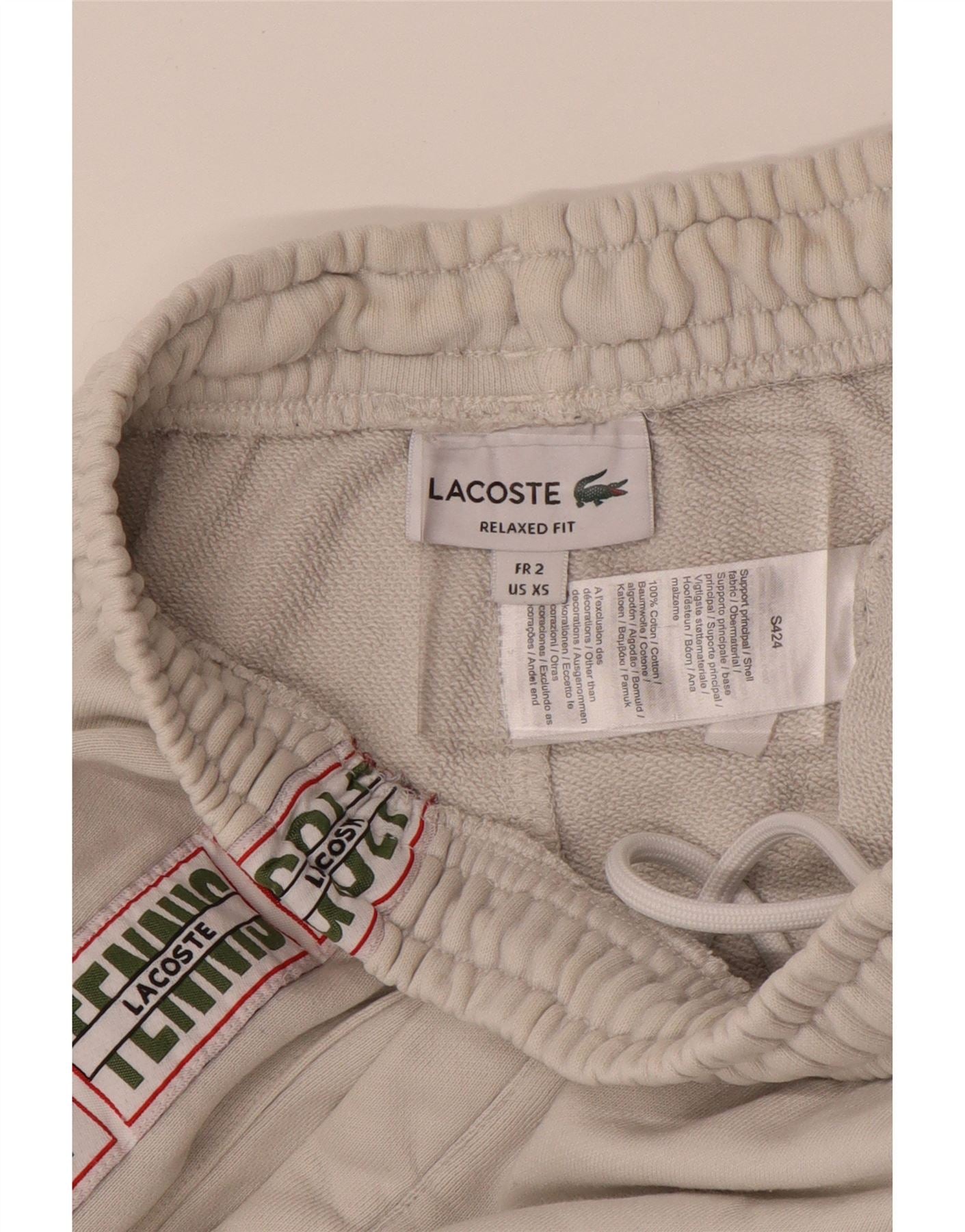 LACOSTE Mens Graphic Tracksuit Trousers Joggers Size 2 XS White Cotton