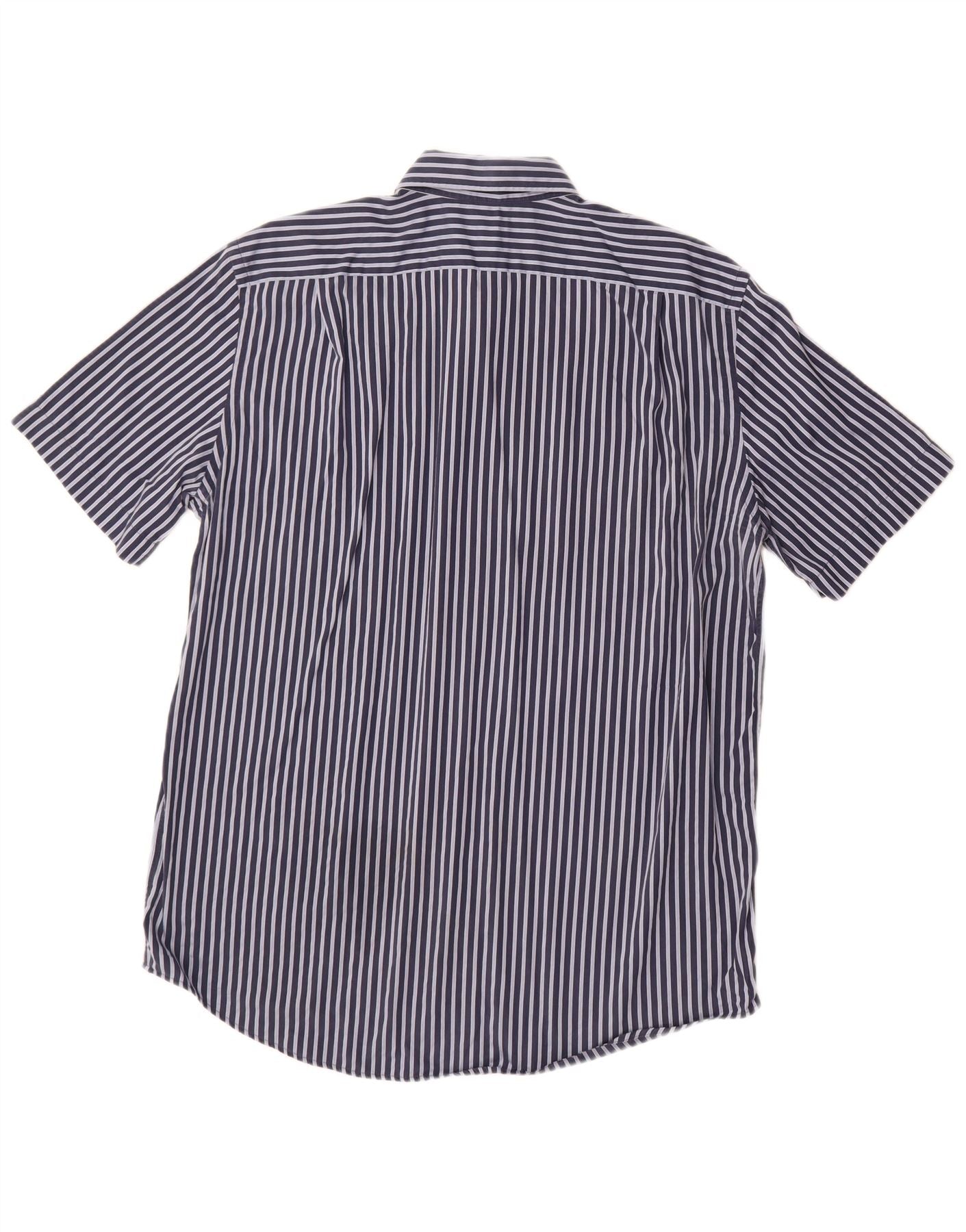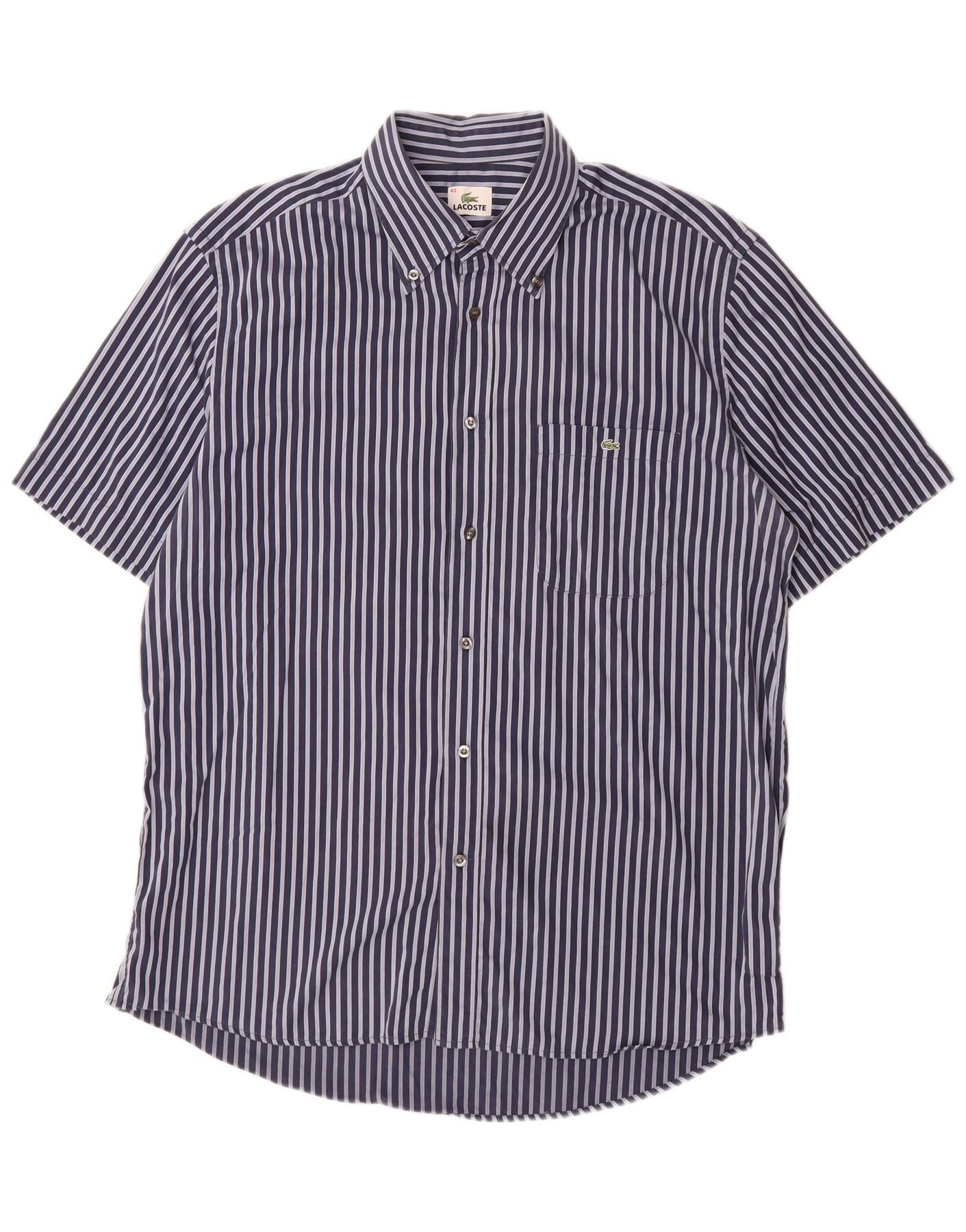 LACOSTE Kortærmet Herreskjorte Størrelse 43 XL Marineblå Nålestribet bomuld
