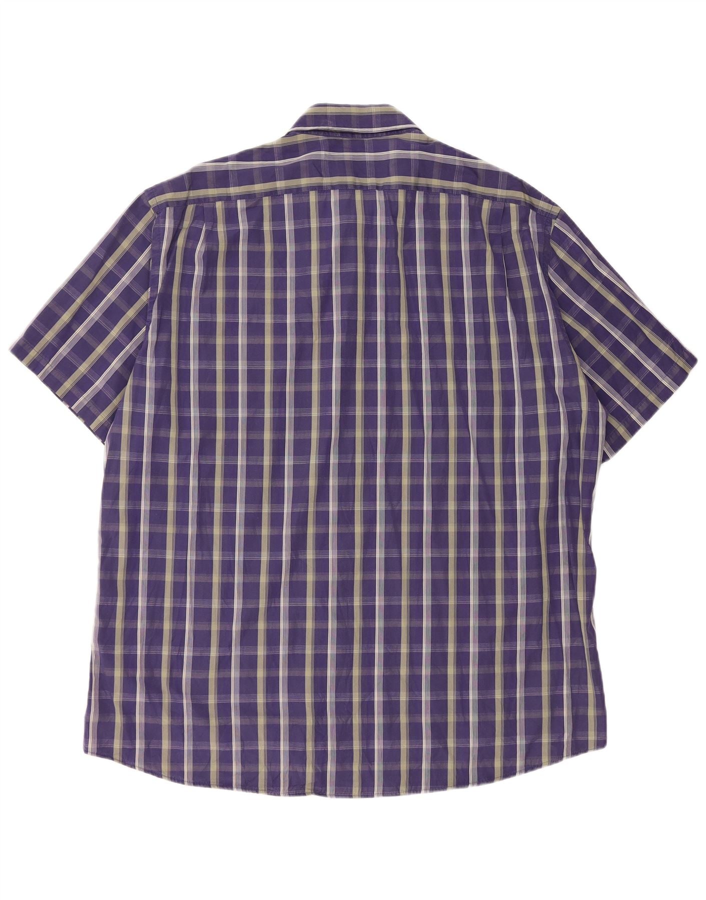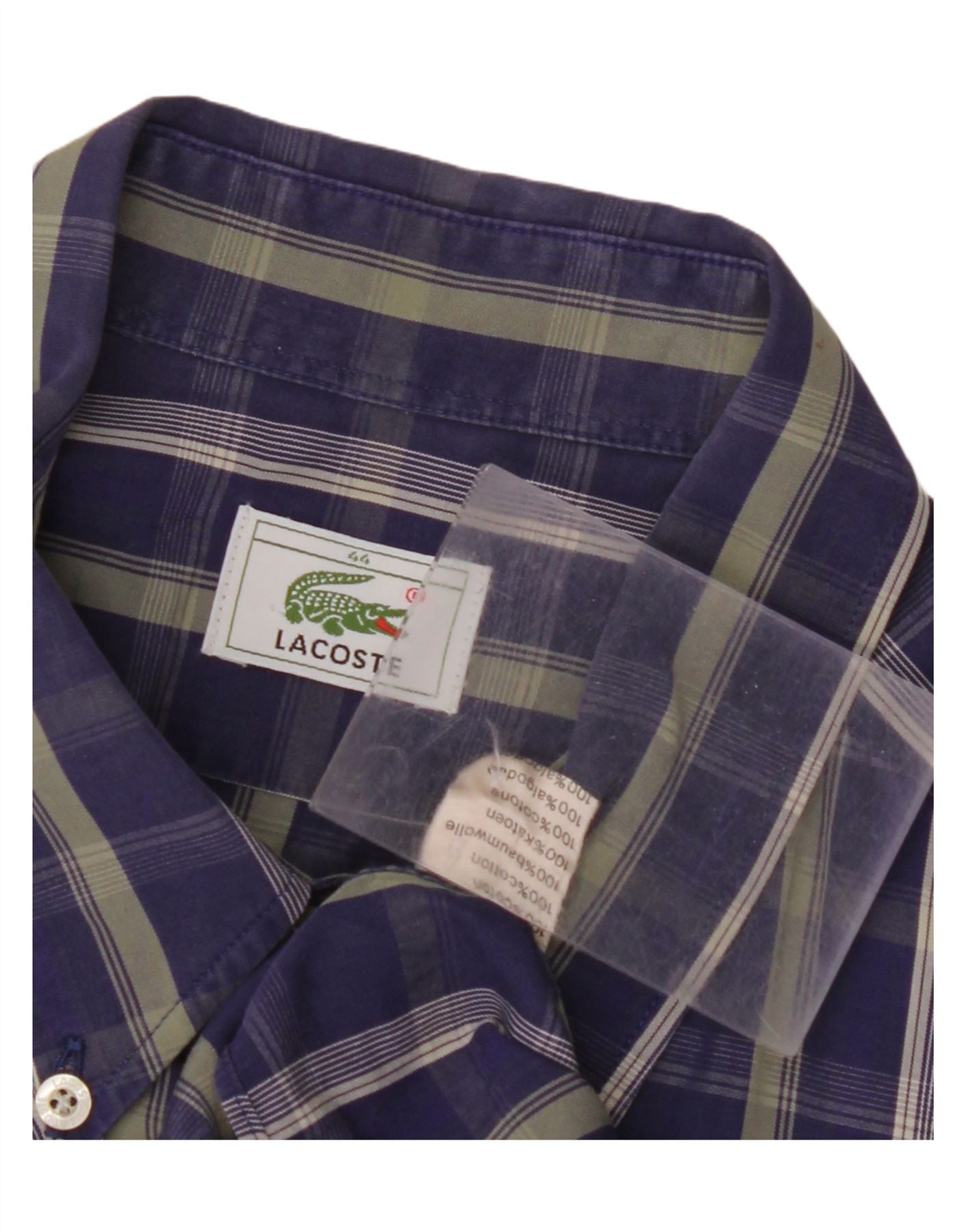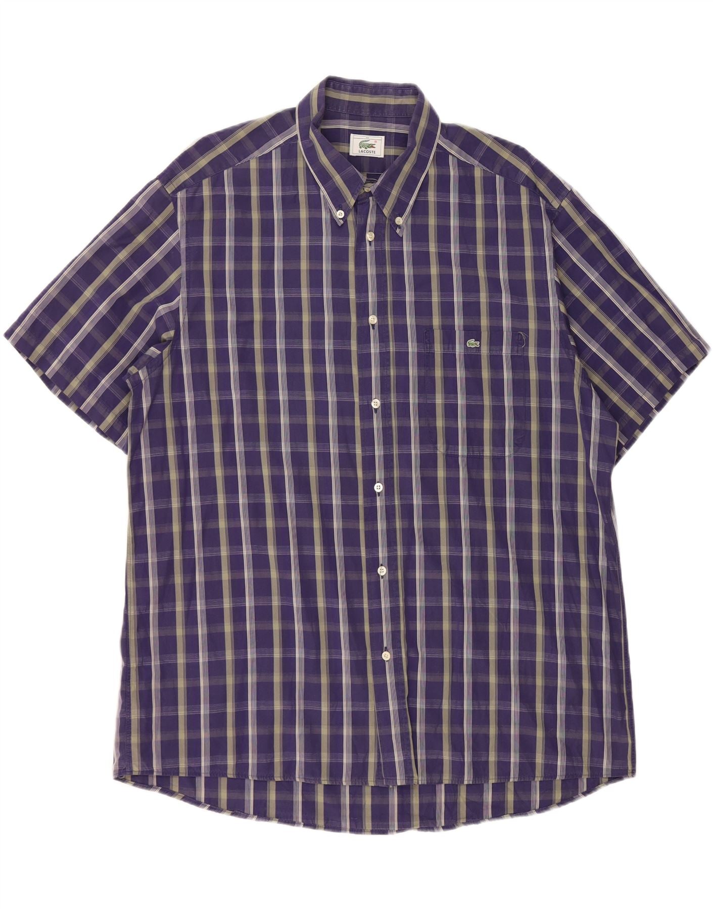 LACOSTE Kortærmet Herreskjorte Størrelse 44 XL Lilla ternet bomuld