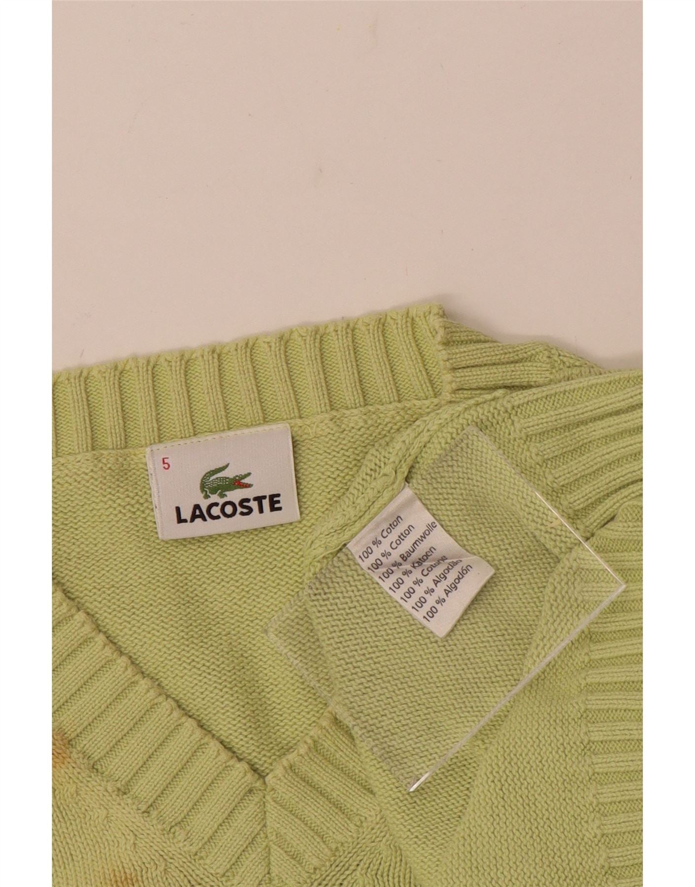 LACOSTE Herre V-hals sweater str. 5 Stor grøn bomuld
