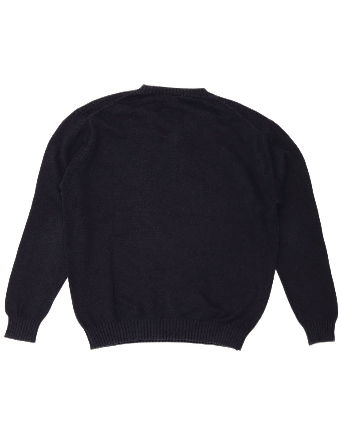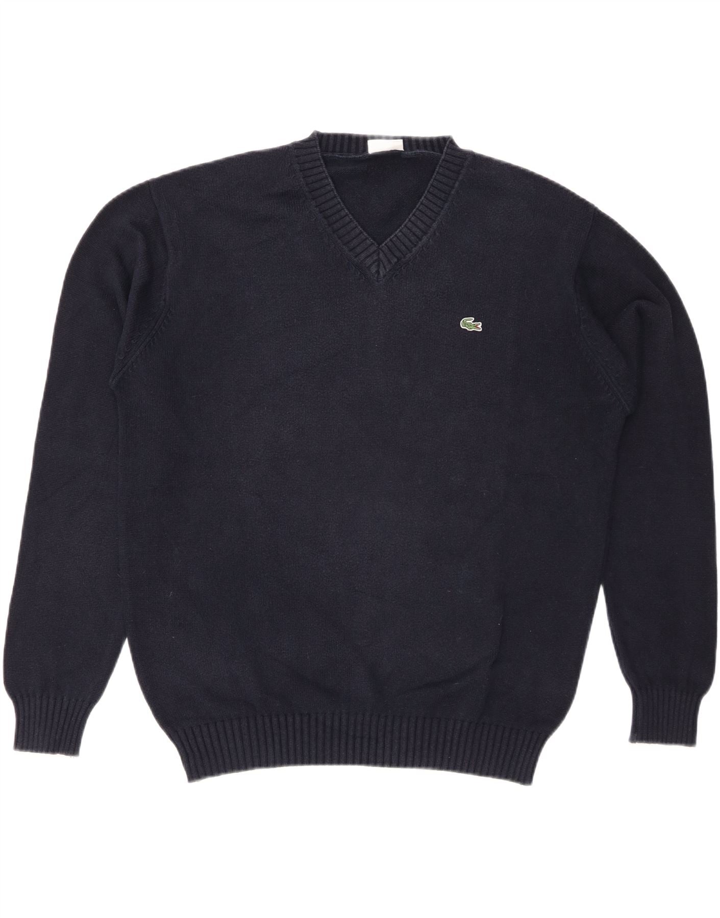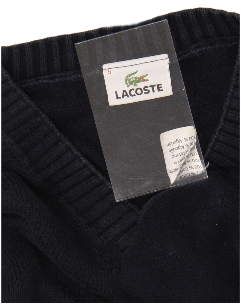 LACOSTE Mens V-Neck Jumper Sweater Size 5 Large Navy Blue Cotton