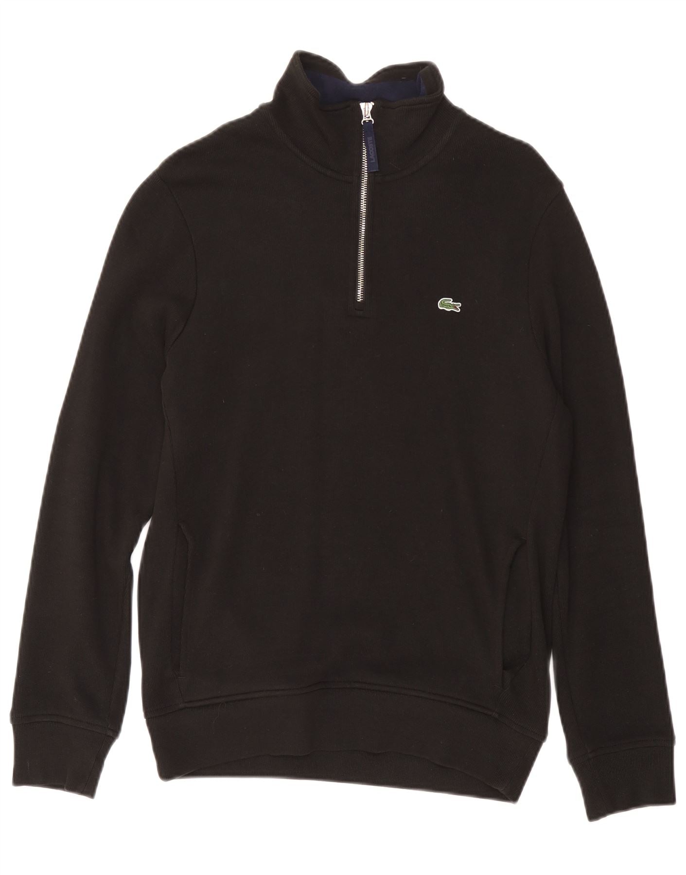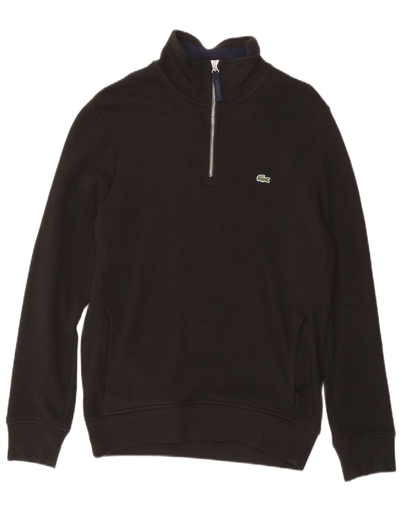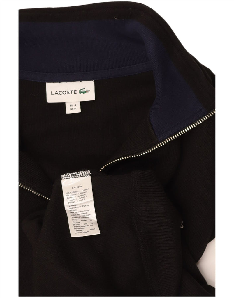 LACOSTE Mens Zip Neck Sweatshirt Jumper Size 4 Medium Black Cotton