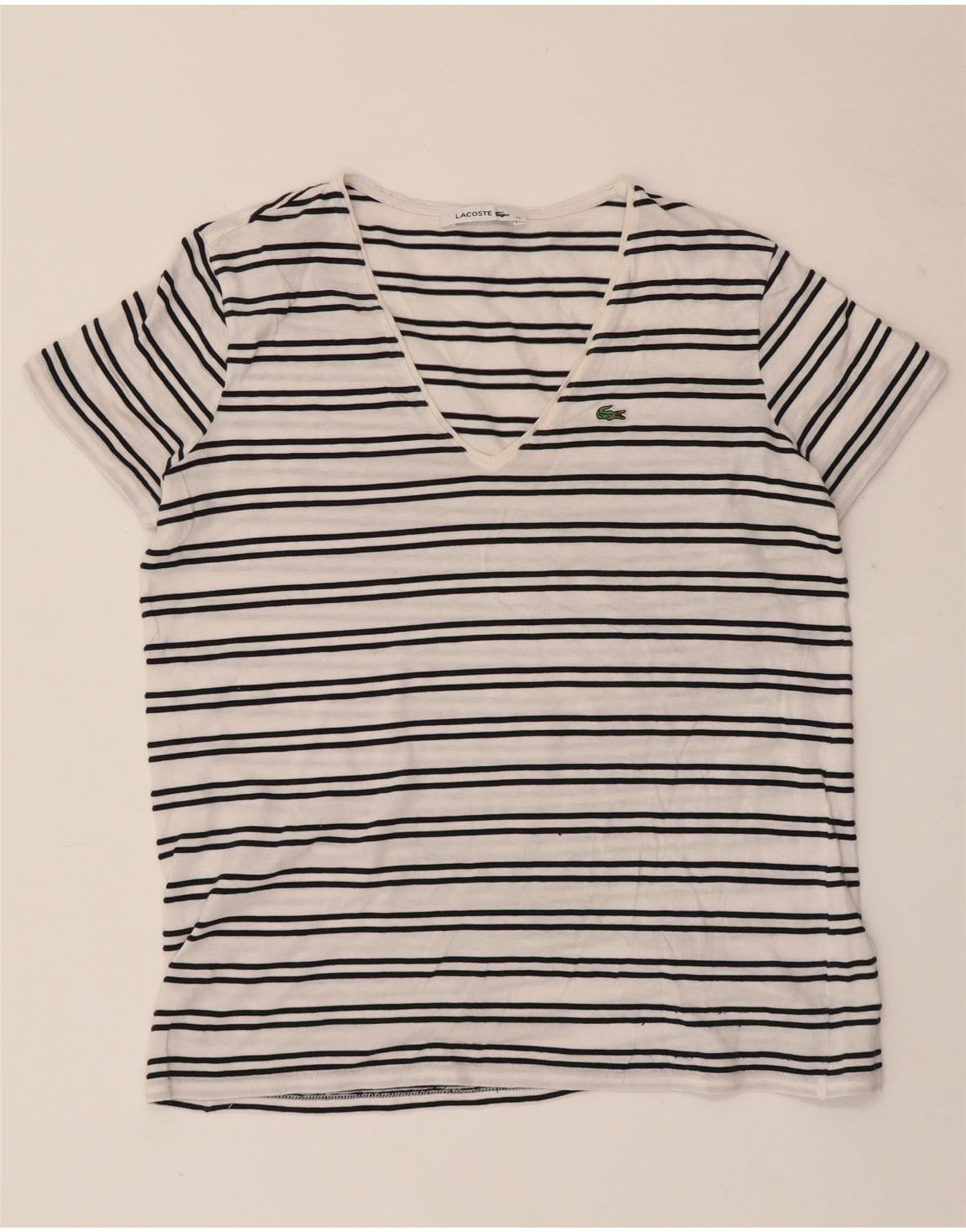 Lacoste T-shirt top til kvinder Størrelse 40 Medium hvid stribet bomuld