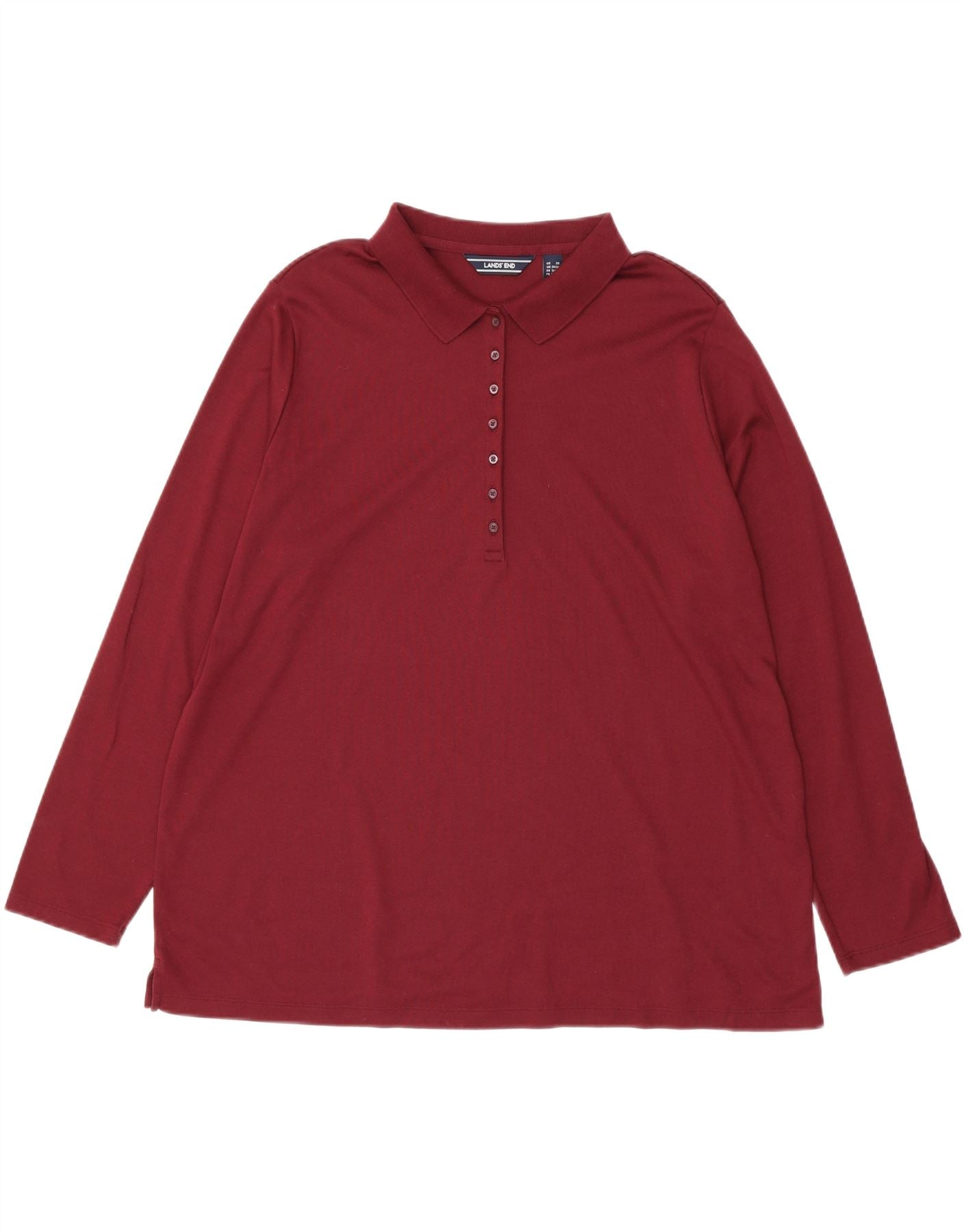 LANDS END Langærmet poloskjorte til kvinder UK 24/26 2XL Bourgogne bomuld