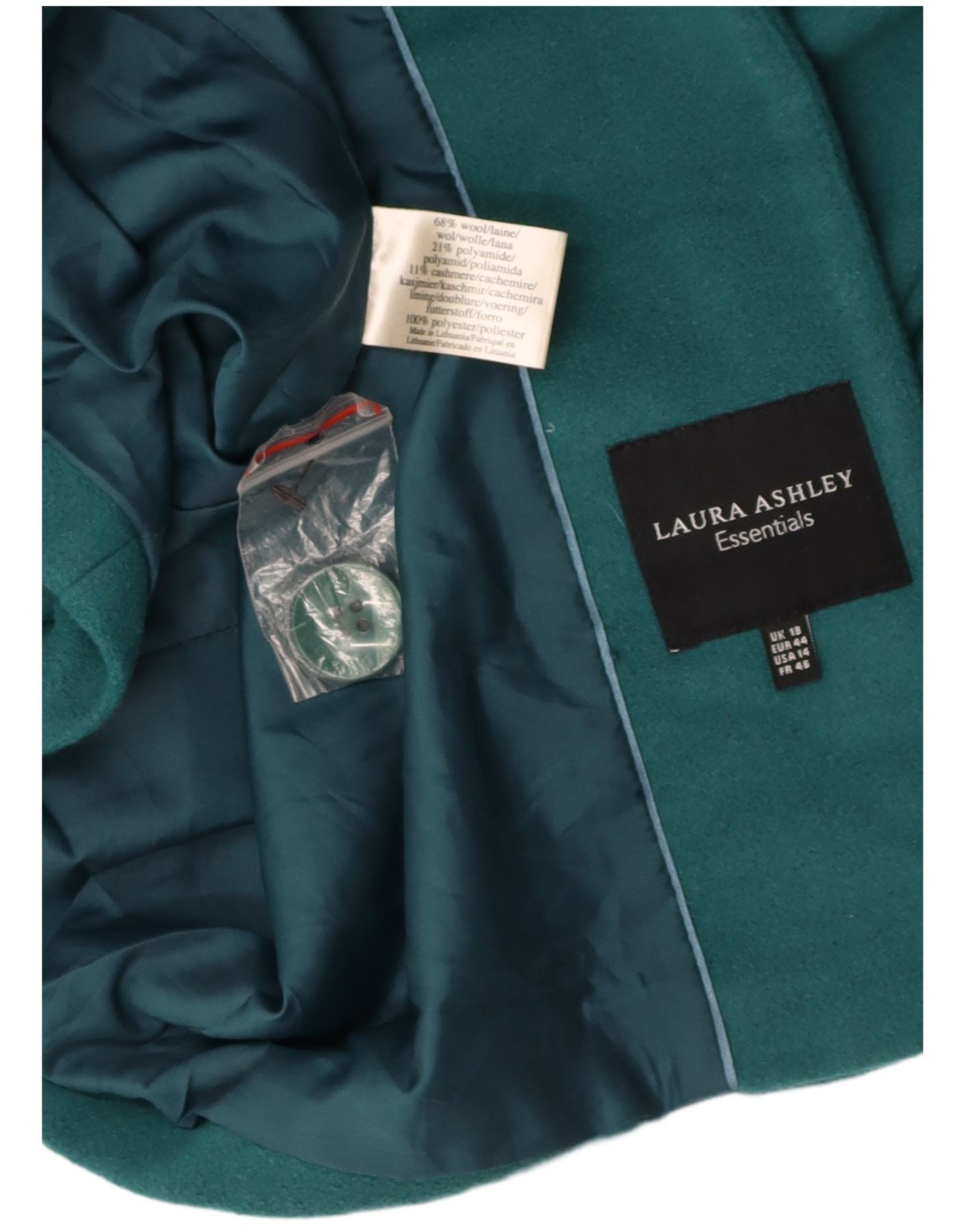 LAURA ASHLEY Womens 3/4 Sleeve Overcoat UK 18 XL Green Wool