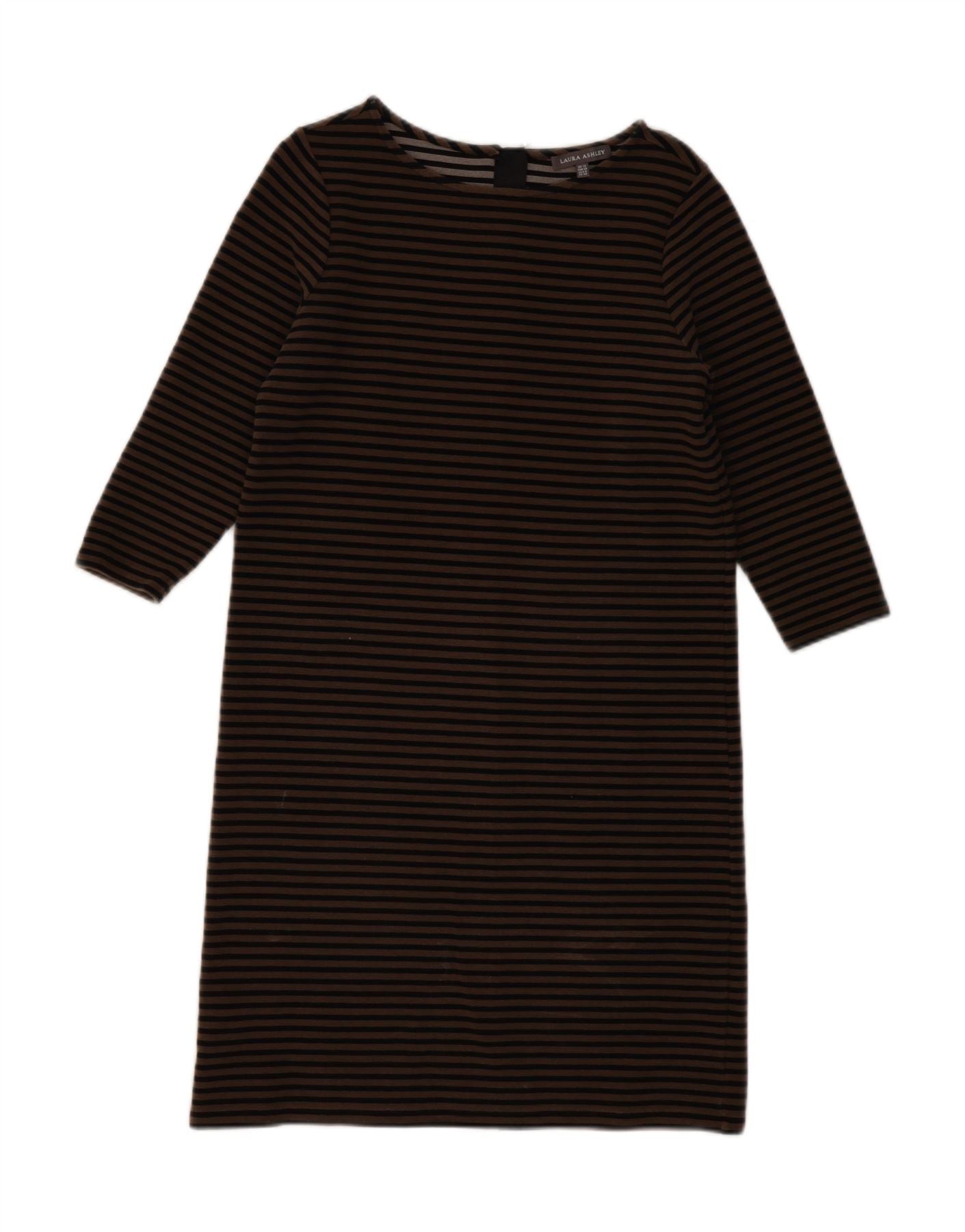 LAURA ASHLEY Dame 3/4 ærmet Shift Dress UK 12 Medium Beige stribet