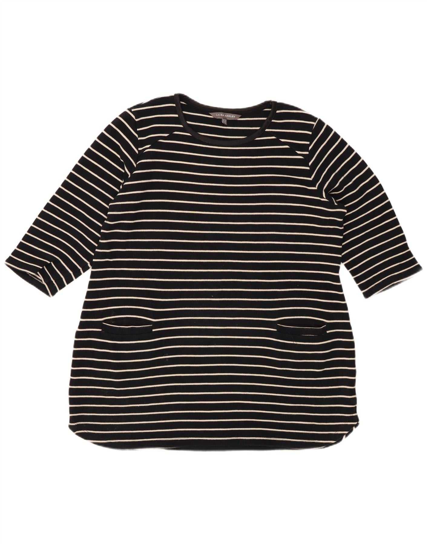 LAURA ASHLEY dametop 3/4 ærmer UK 18 XL sortstribet bomuld
