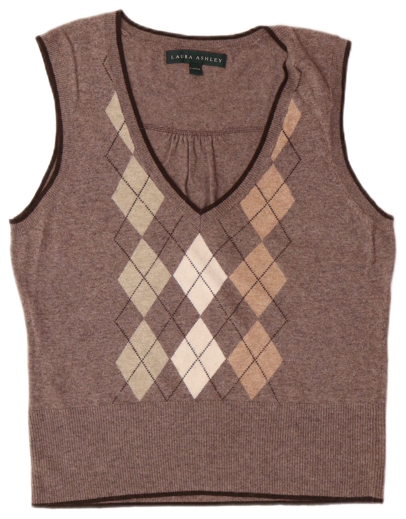 LAURA ASHLEY Dame Vest Tank Top UK 14 Large Brown Argyle/Diamond Viscose