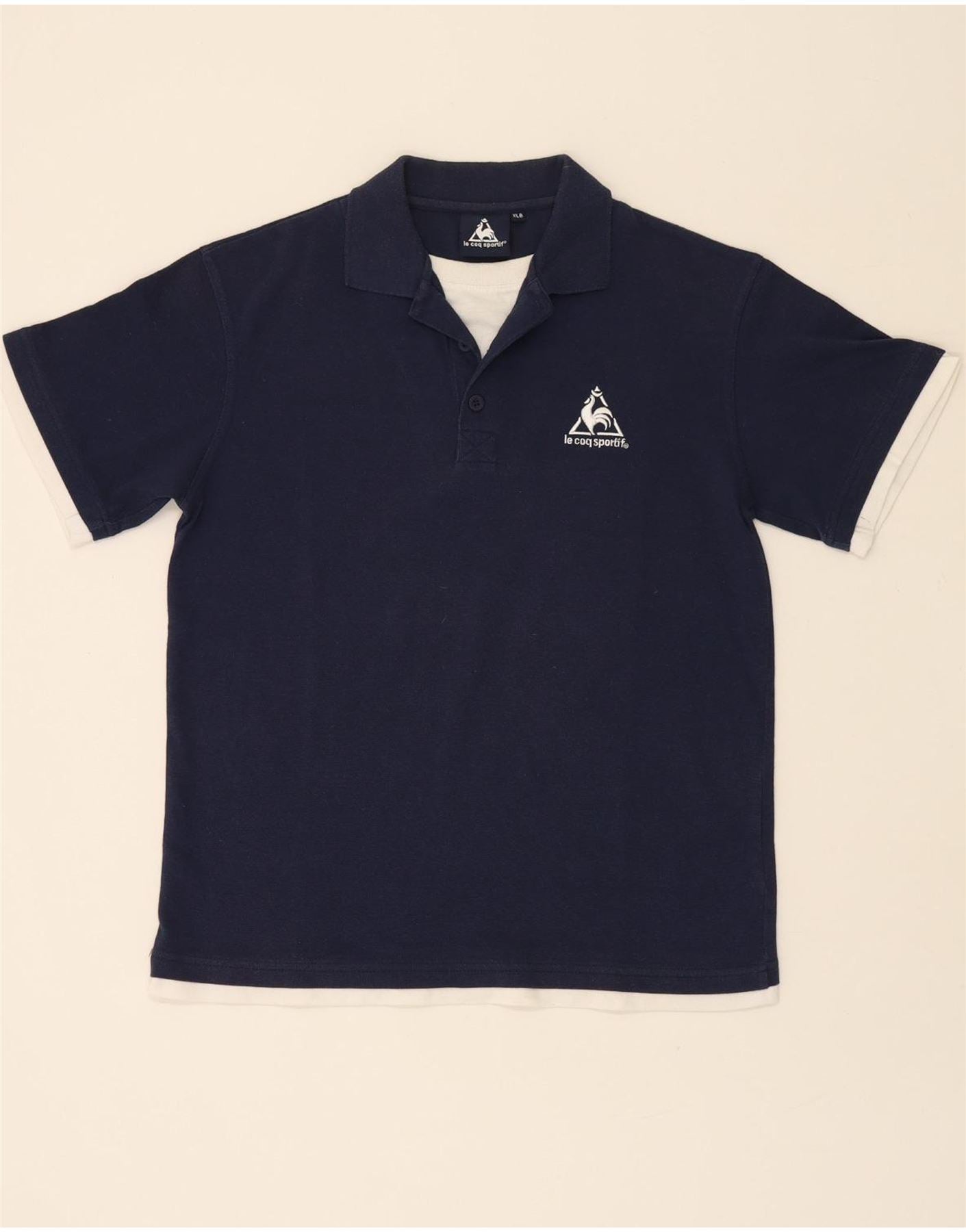 LE COQ SPORTIF Boys Polo Shirt 15-16 Years XL Navy Blue Polyester