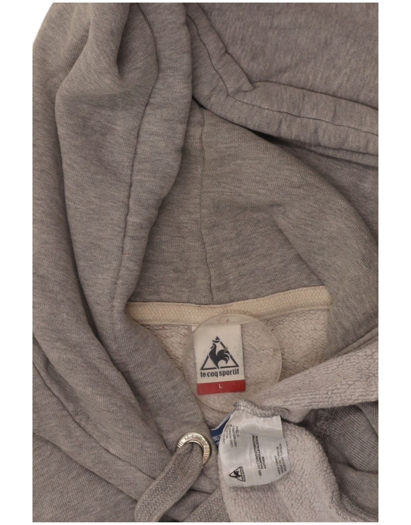 LE COQ SPORTIF Mens Graphic Hoodie Jumper Large Grey Cotton