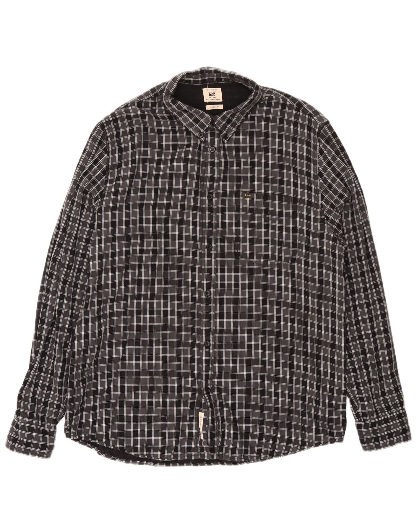 Lee Herre Regular Fit Flanellskjorte 2XL sort ternet bomuld