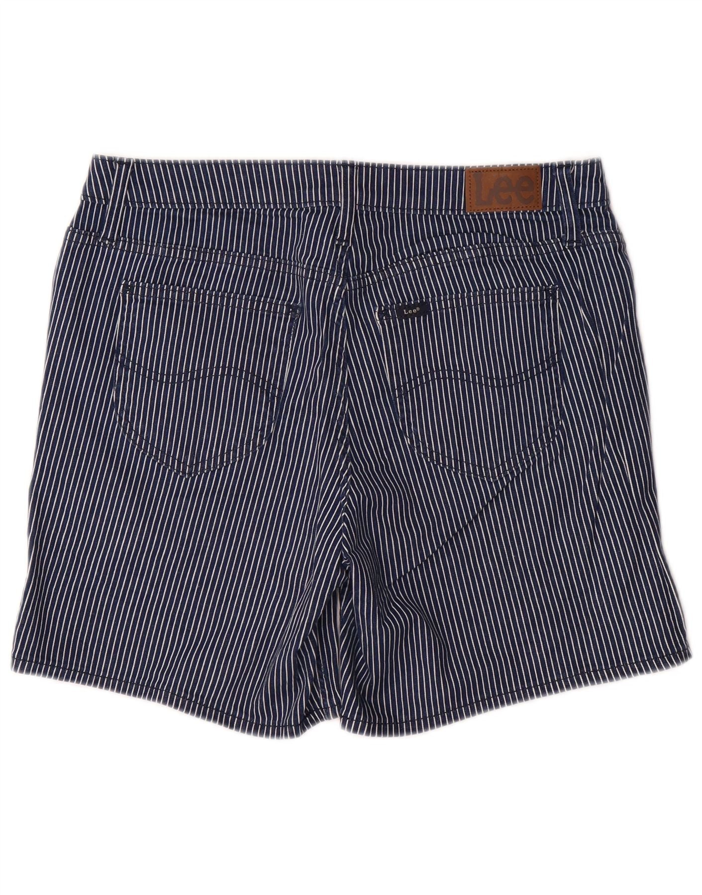 LEE Dame Mid Rise Casual Shorts US 12 Large W32 Navy Blue Pinstripe