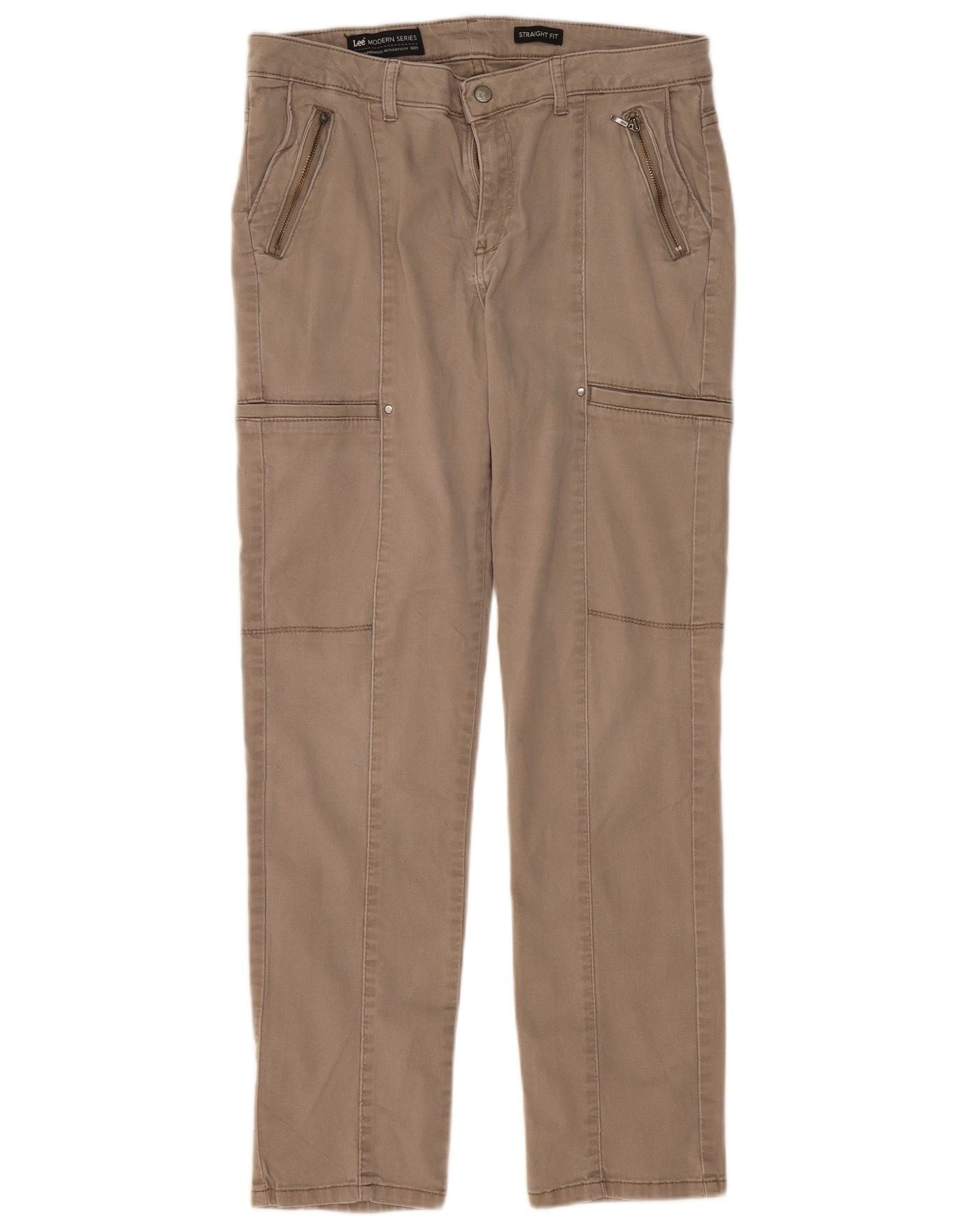 Lee Womens Modern Series Straight Cargo Trousers US 12 Large W32 L29 Beige