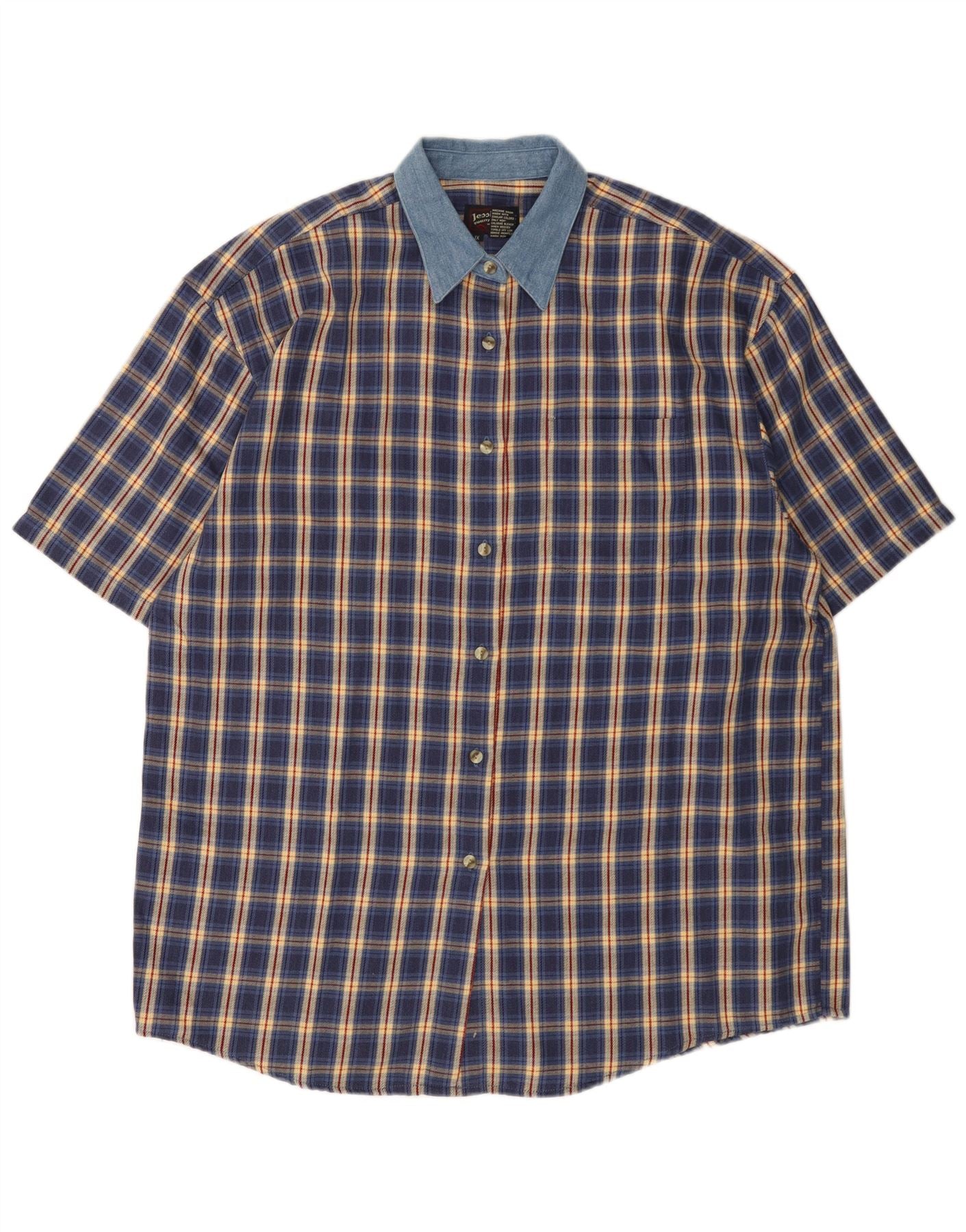 LEE oversized kortærmet flannelskjorte til kvinder, UK 18 XL marineblå ternet